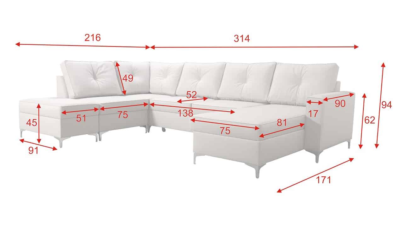 Az Adoni IV egy pazar és elegáns U-alakú kanapé. A kanapé precíz kivitelezése kiegészíti letisztult és finom kialakítását, valamint praktikus funkcióit. Különösen alkalmas nagy terekbe, mivel szélessége meghaladja a 3 métert.