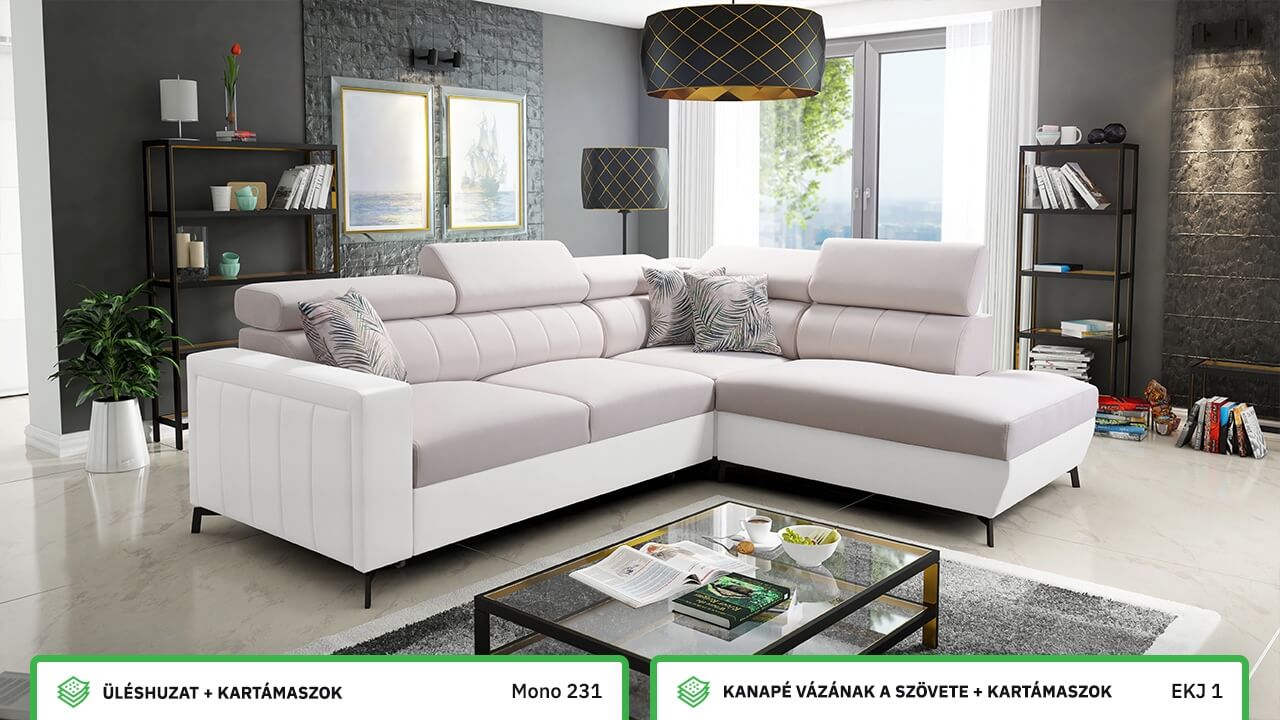 Konfigurátorunk segítségével könnyen megtervezheti új kanapéját. Először válassza ki a sarkot, majd válassza ki a kívánt kárpitanyagot az üléshez és a vázhoz. Az utolsó lépésekben válassza ki a díszpárnák mintáját, a kiegészítők típusát és a lábakat. A teljes konfigurátor elég érthető ahhoz, hogy új kanapéját pontosan az Ön ízlése szerint tervezze meg.