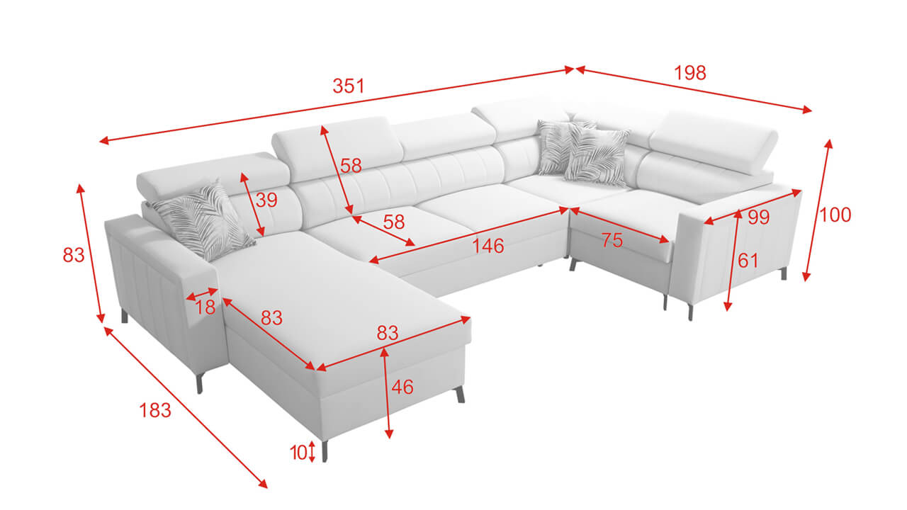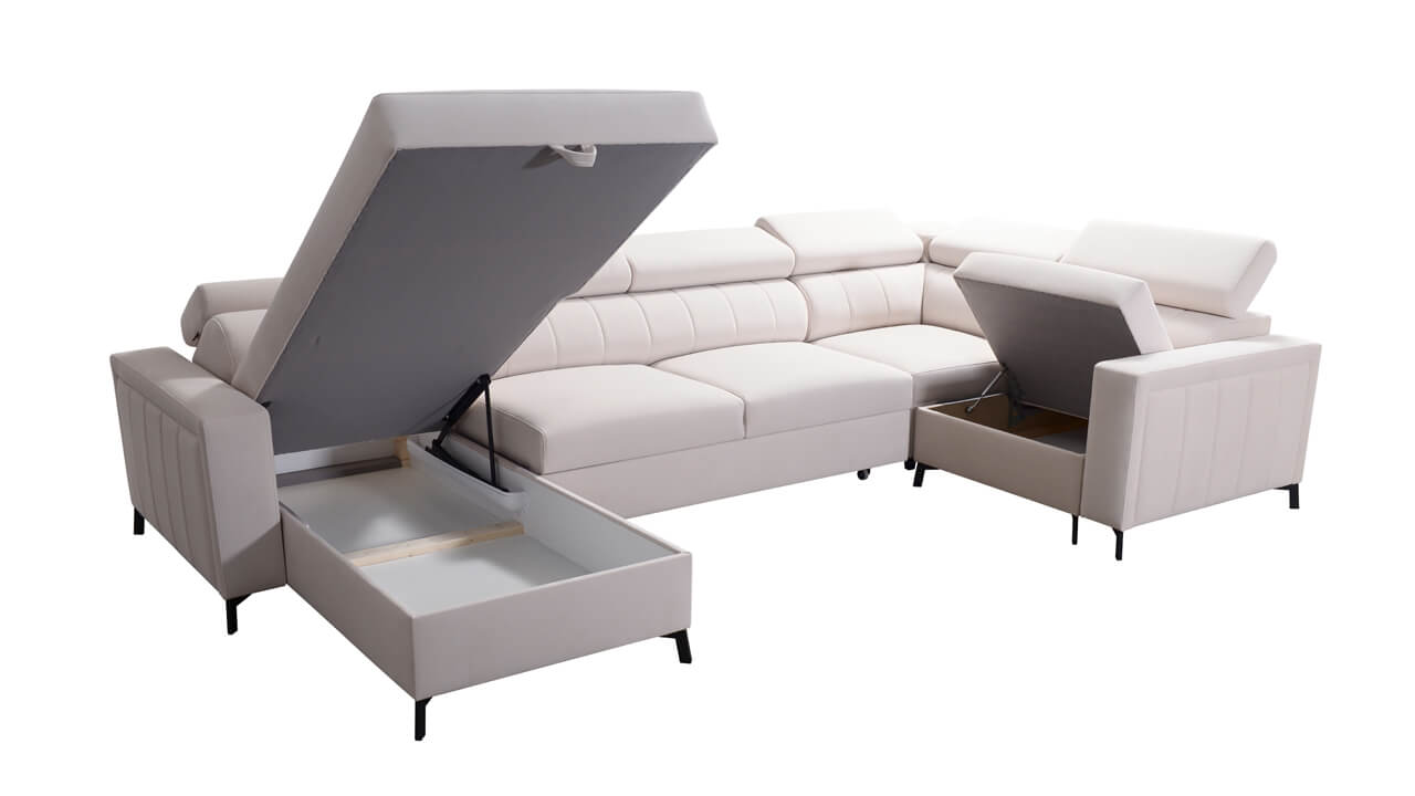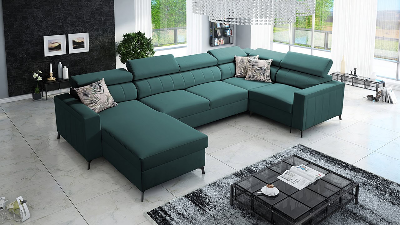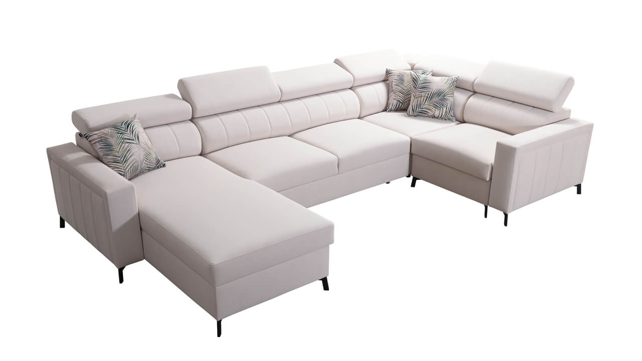 A jellegzetes, stílusos és nagyon kényelmes Balticco V Maxi U alakú kanapé bármelyik nagy nappali kedvence lesz. Dizájnos bútordarabként funkcionál, ugyanakkor lehetővé teszi, hogy teljes mértékben kihasználja minden praktikus funkcióját. Rengeteg helyet biztosít az egész család számára a pihenéshez, amit az állítható fejtámlák és a kényelmes ülőfelület is fokozni fog.