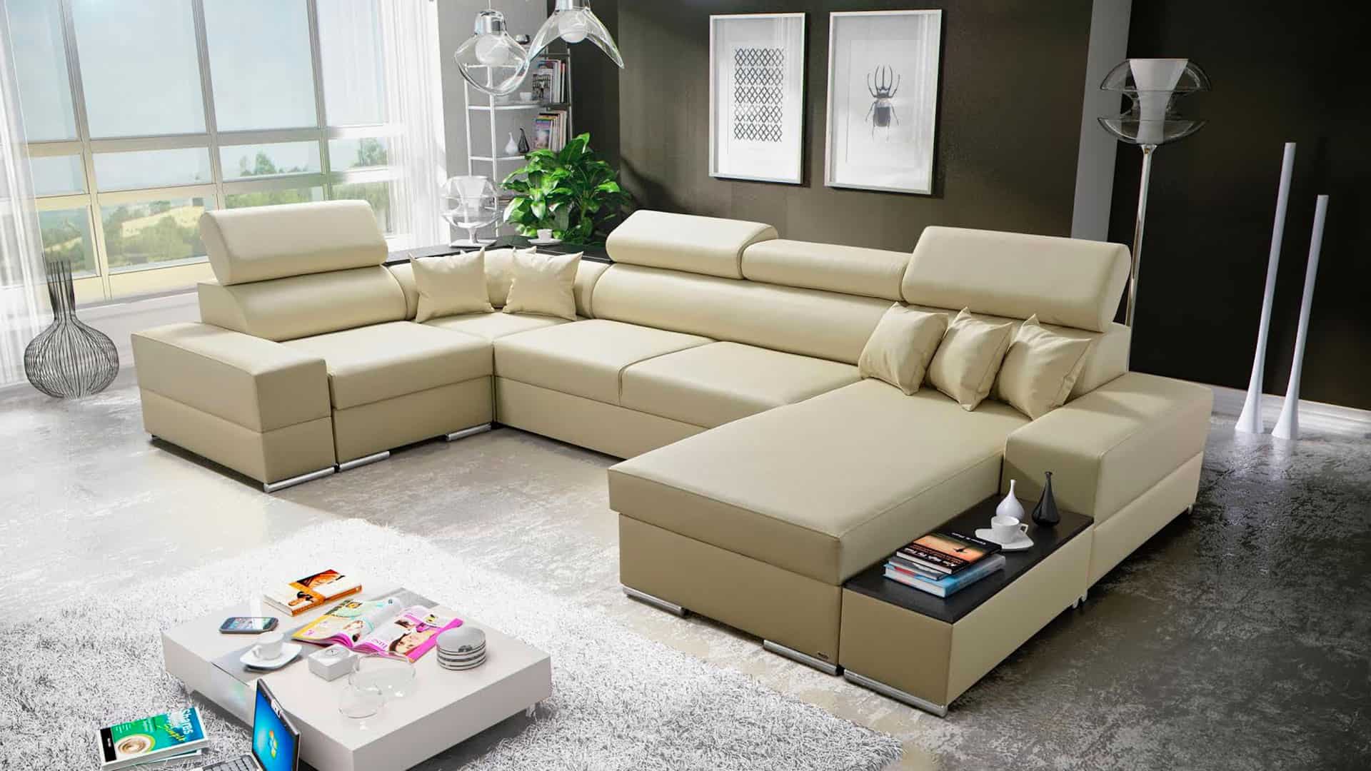 Állítható fejtámlák és széles ülőfelület jellemzi leginkább a Herkulo U- alakú kanapét. Ezen kívül tárolóhelyet is biztosít, a kibontás lehetőségét és egy kis összecsukható asztalt is tartalmaz.