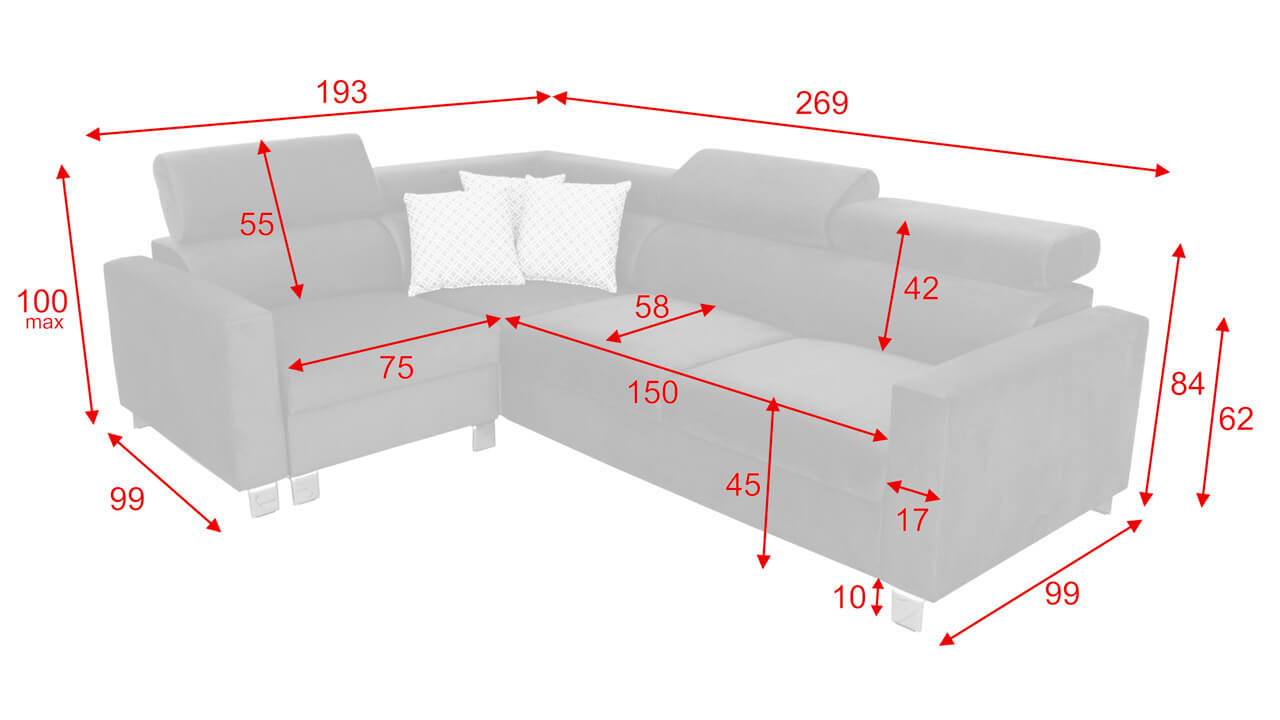 A Loreti II Mix kihajitható sarokkanapéval szabadon választhatja meg a kárpitanyagot, a lábak típusát és a párnák mintázatát. Pontosan az Ön igényei és ízlése szerint rendezheti be. A nagyszerű kialakítás mellett szétbontva egy alkalmi alvóhelyet és egy kis tárolóhelyet is biztosít.