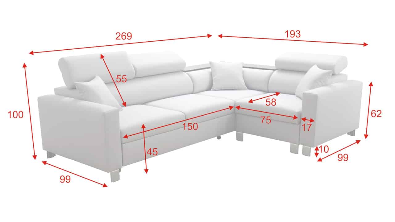 Az állítható fejtámlák, a tárolóhely és a dönthetőség olyan praktikus funkciók, amelyeknek biztosan hasznát fogja venni ezen a kanapén. Dizájn szempontjából tökéletesen illeszkedik a nappalijába, mivel a kárpitanyag típusát és színét pontosan az Ön ízlése szerint választhatja ki.