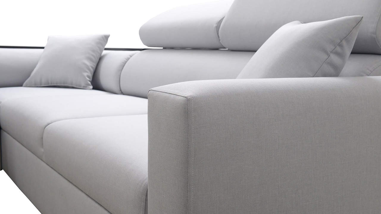 Sarokkanapé, amely a kanapé huzatok precíz kivitelezésének és a minőségi tömör váznak köszönhetően hosszú éveken át szolgál majd. Kényelmes ülései és állítható fejtámlái arra is csábítanak, hogy hosszú időn át lustálkodjon. Kisebb változatban is kapható.