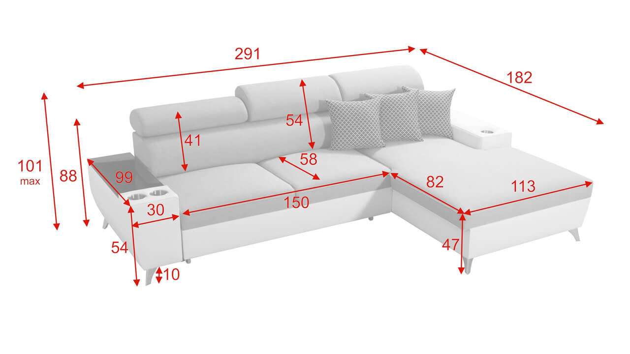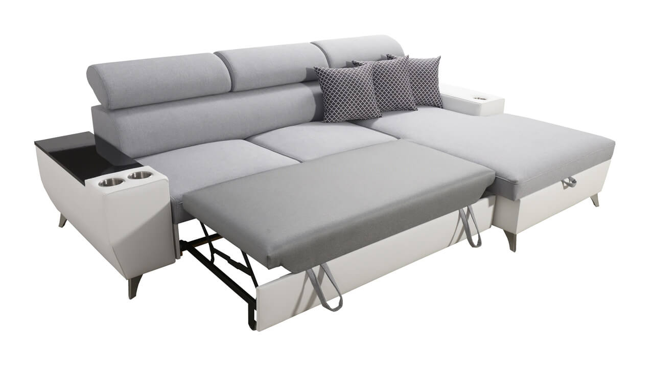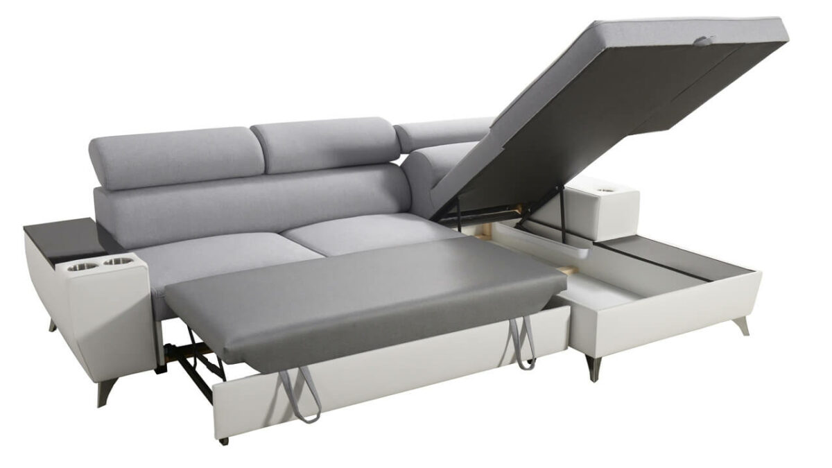 A Modio I Maxi sarokkanapé tárolóhellyel azoknak készült, akik kényelmet igényelnek a kanapéjuktól. Állítható fejtámlákkal, pohártartókkal az ülés mindkét oldalán, beépített minibárral és szilárd ülésekkel rendelkezik, amelyek még idő múlásával sem fog elhasználódni. A párnákat ingyenesen adjuk az ülés mellé.