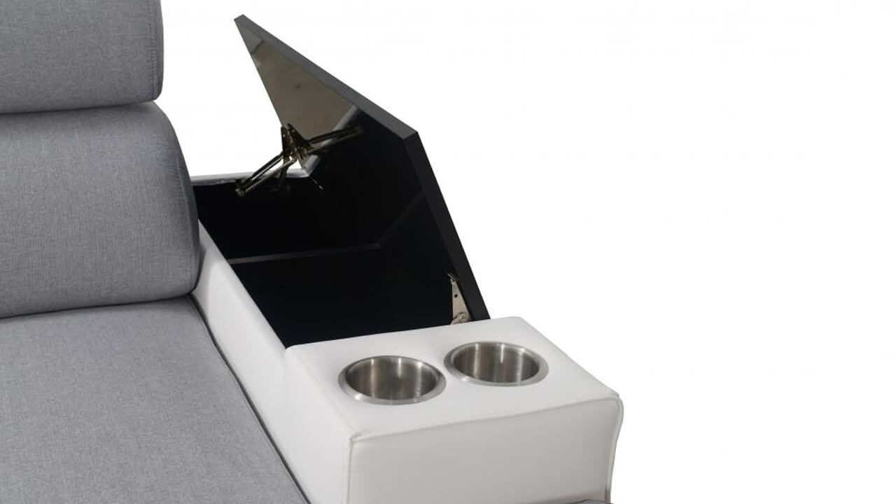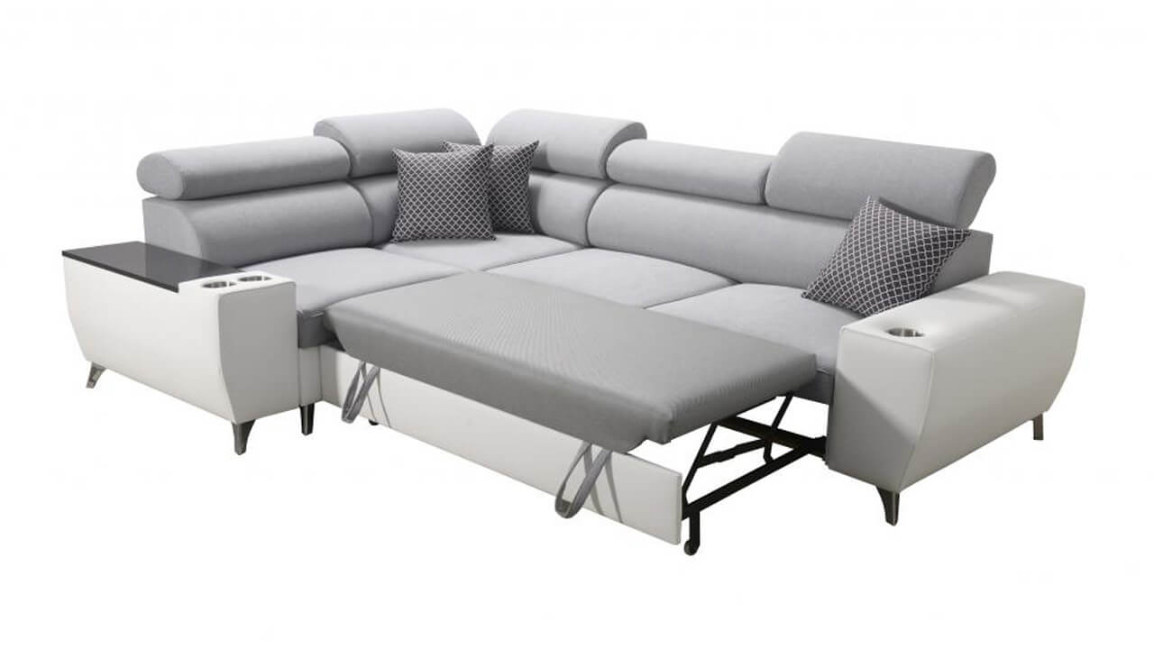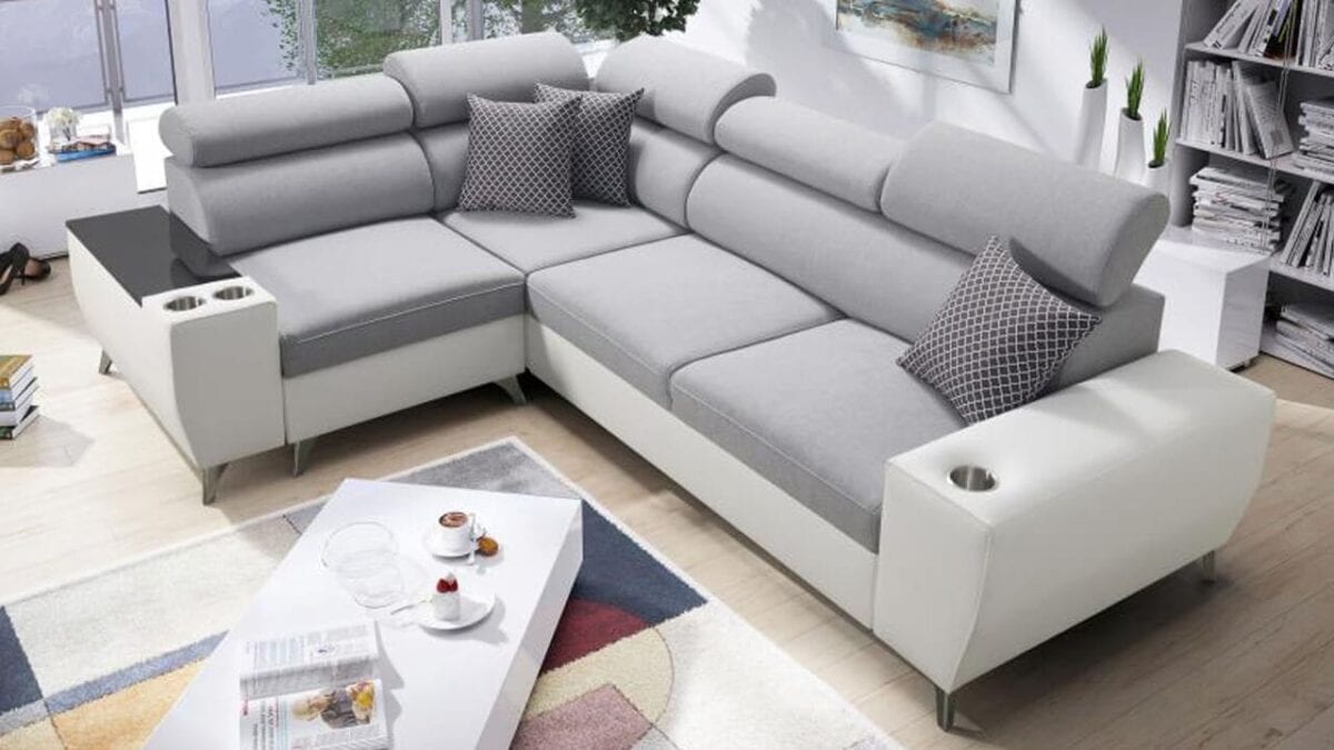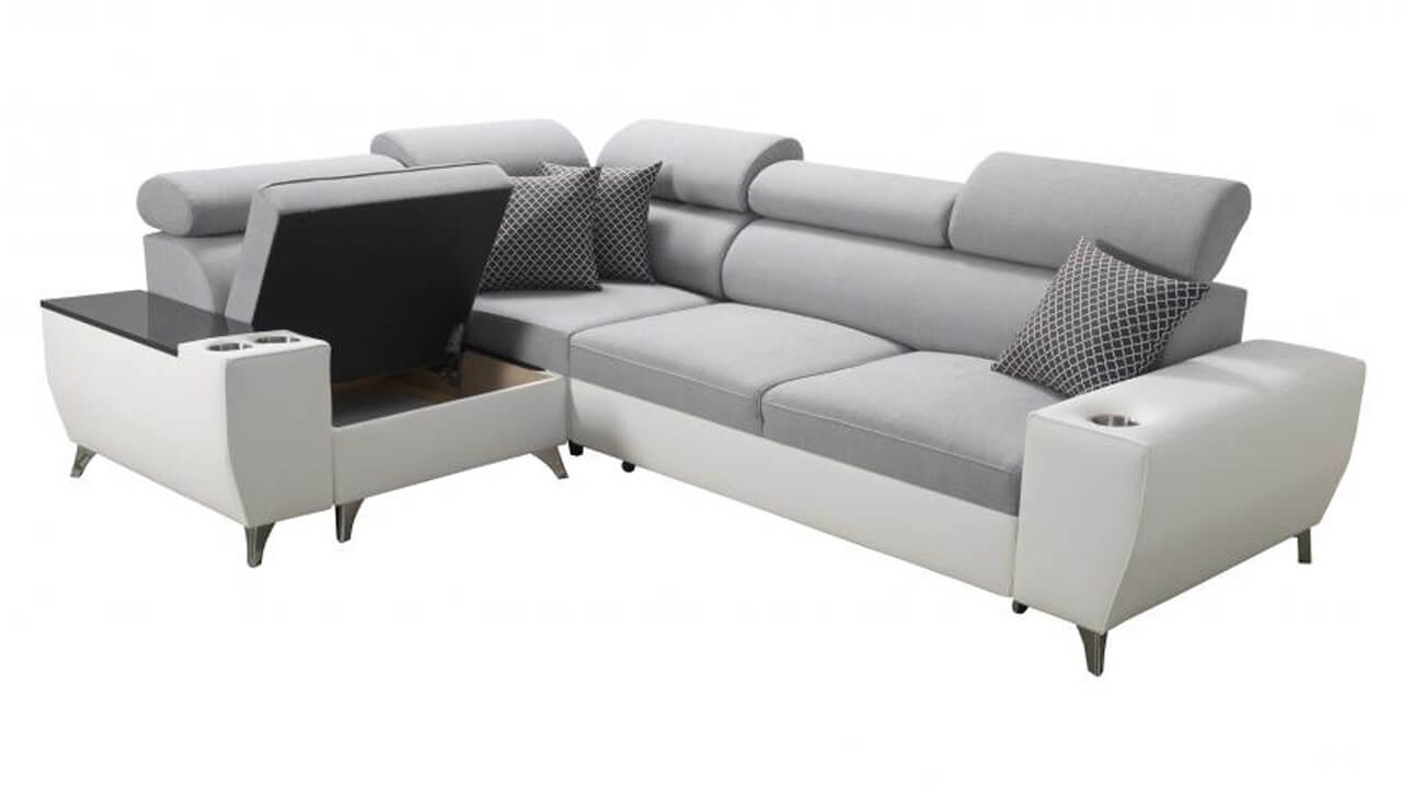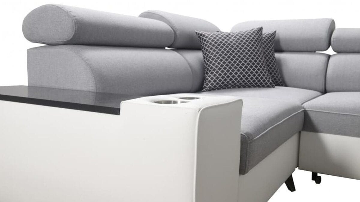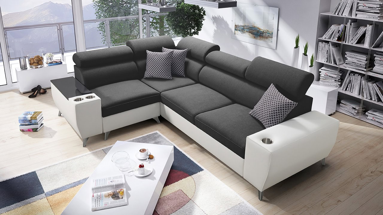 A Modio II sarokkanapé magas szintű kényelmet biztosít. Ez a sarokkanapé az olyan alapfunkciók mellett, mint a fekvőfelület és a kisebb tárolóhely, beépített minibárral, pohártartókkal és állítható fejtámlákkal is rendelkezik. Kiválaszthatja a kárpit színét, a lábak típusát és a sarok tájolását.