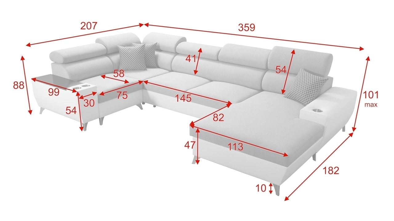 Tágas kanapét keres kényelmes ülésekkel, nagy tárolóhelyekkel, beépített minibárral és pohártartókkal? Akkor a Modio IV Maxi kanapé pont az Ön számára készült. Nagyszerű pihenést fogsz élvezni rajta, és sok éven át újszerű lesz, mivel nagyon erős anyagokból készült.
