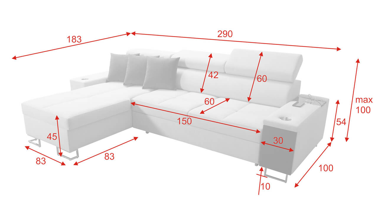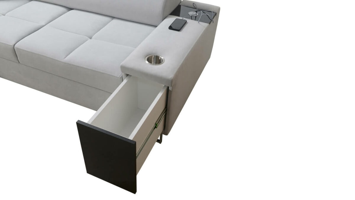 A Murena I Maxi sarokkanapé tárolóhellyel az Ön igényei szerint alakítható. A kiegészítők anyagtípusa, színe és kialakítása úgy tervezhető, hogy tökéletesen illeszkedjen a nappalijához. Az illeszkedő dizájn mellett olyan praktikus funkciókat is értékelni fog, mint a beépített minibár, a fejtámlák és a beépített töltőállomás konnektorral és USB-vel.