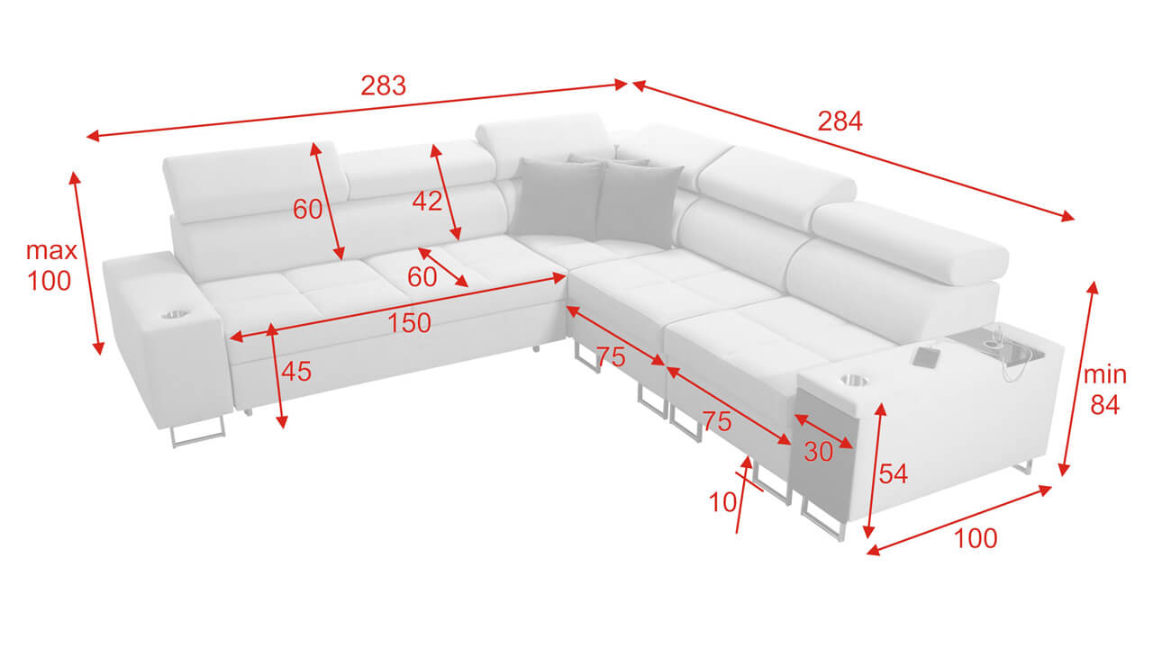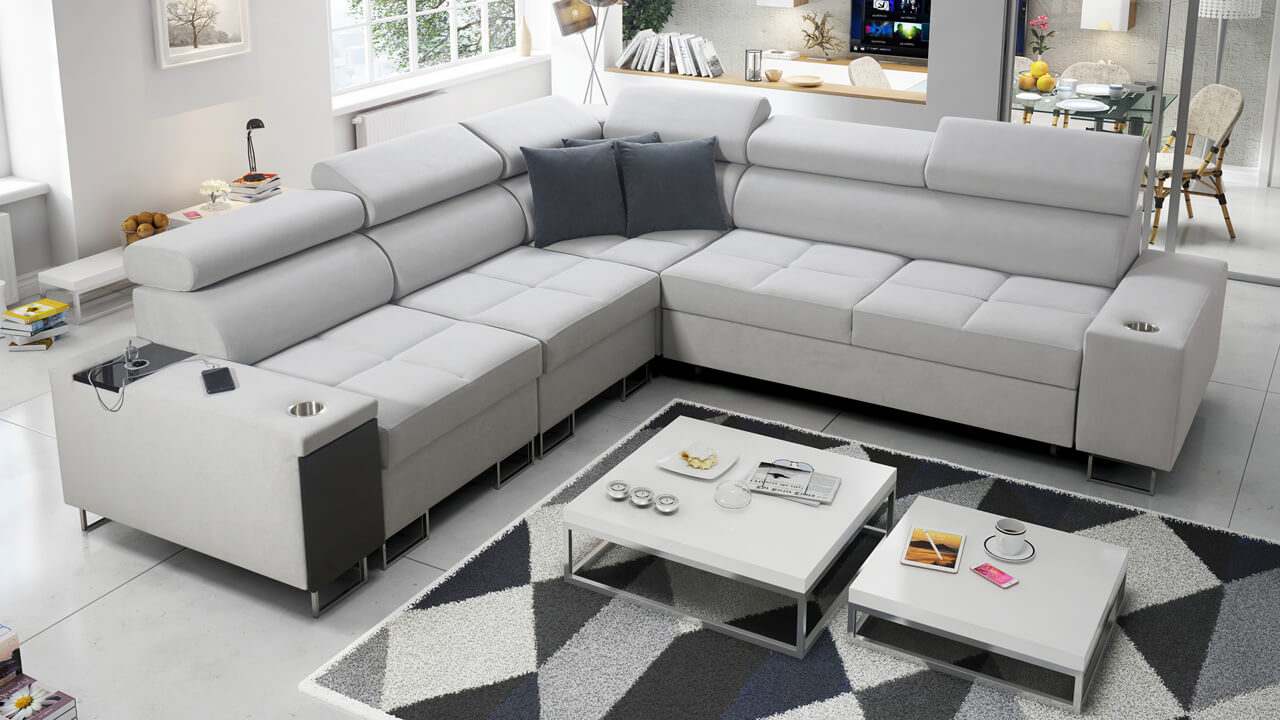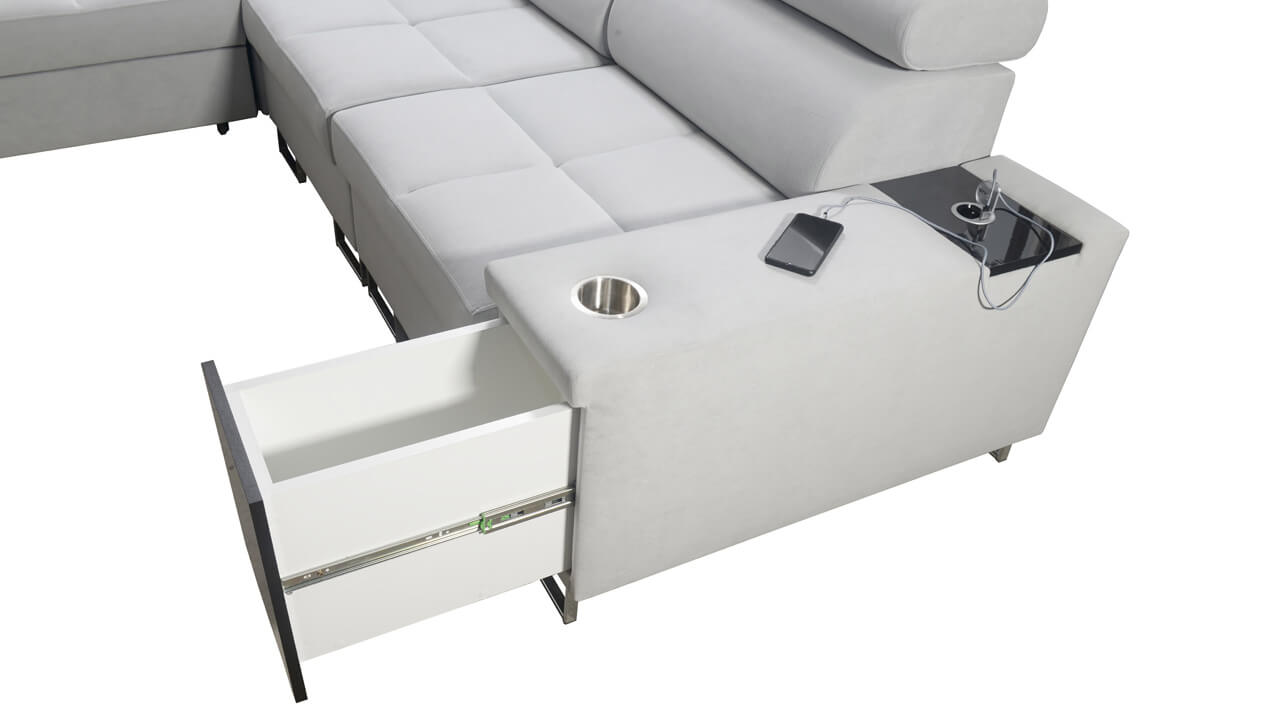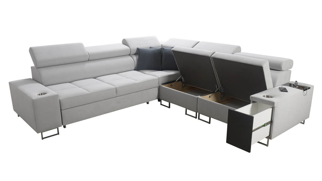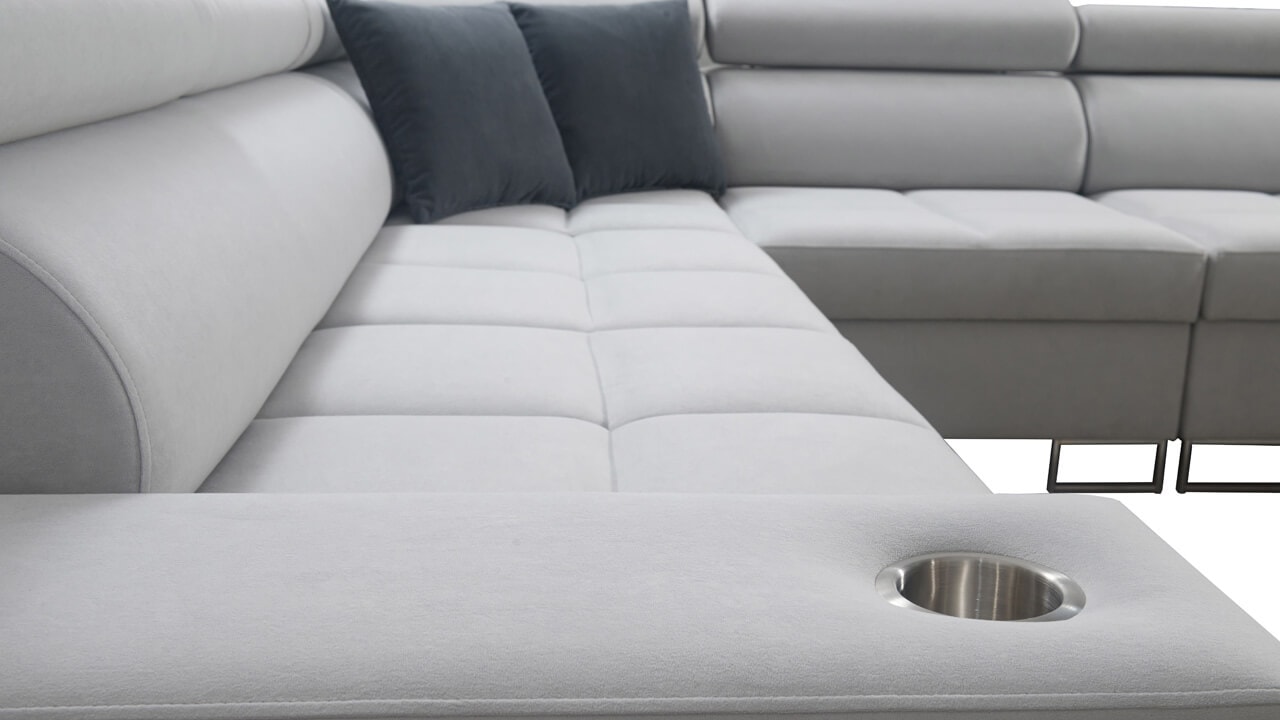 A finoman megmunkált Murena III sarokkanapé letisztult dizájnjával nappaliba és irodába egyaránt alkalmas. Nagyon masszív belső szerkezettel rendelkezik, amelynek köszönhetően nem válik gyorsan szétültté és sok éven át megtartja újszerű állapotát. Olyan praktikus funkciókkal van felszerelve, mint a kihajthatóság, a tárolóhely, a beépített minibár, az állítható fejtámlák és a töltőállomás.