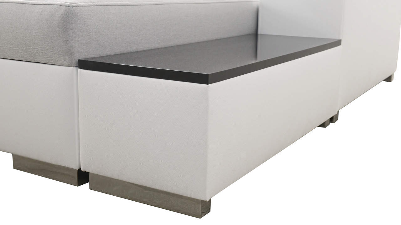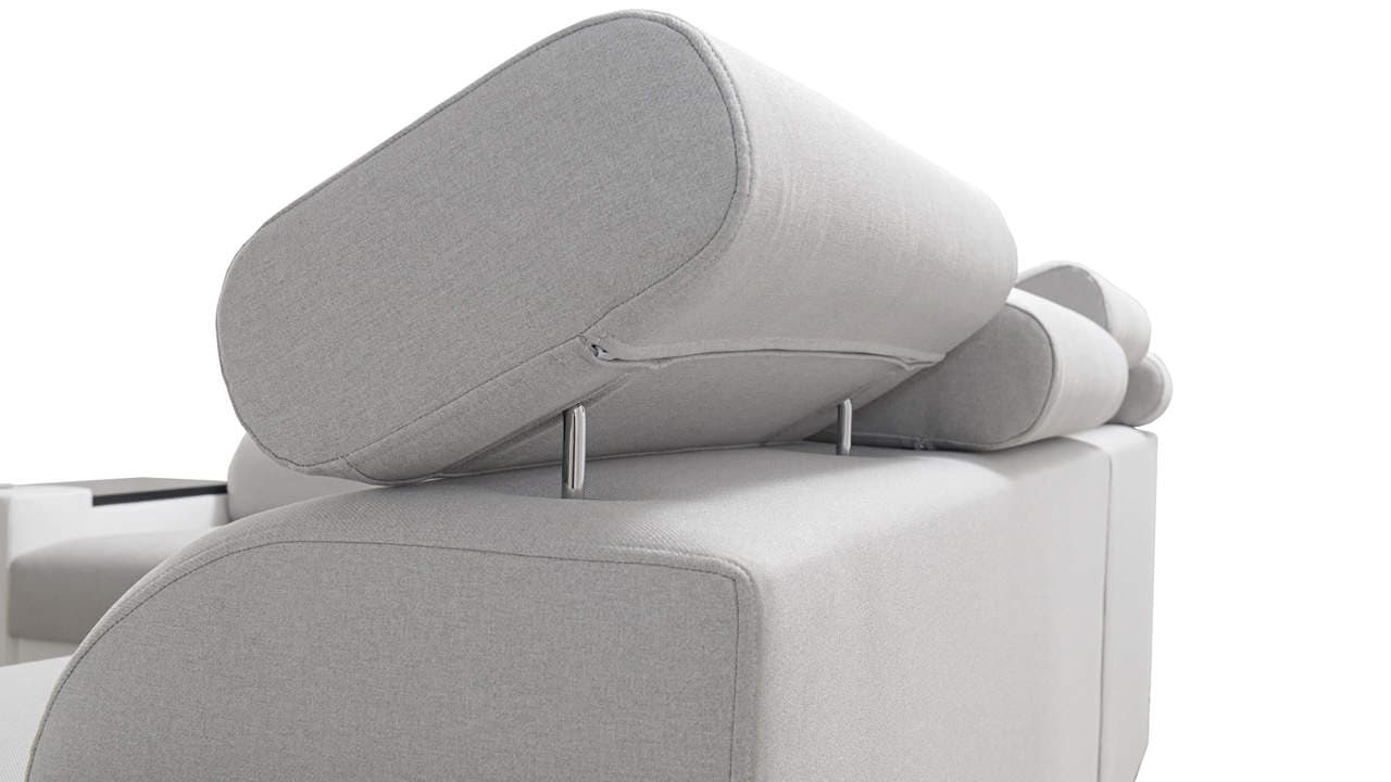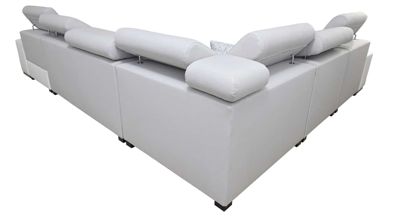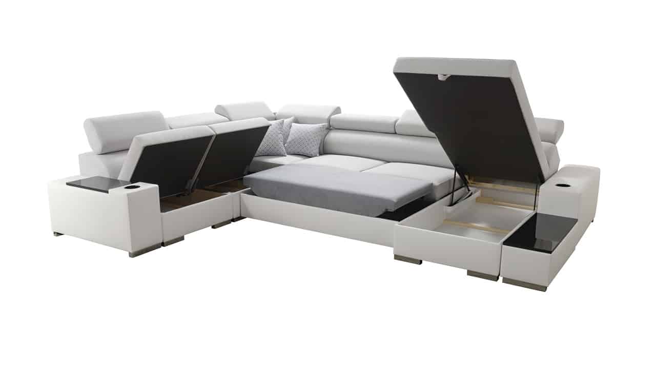 A nagy U alakú kanapé exkluzív modellje különösen nagy kényelmet nyújt majd leendő tulajdonosainak. A kanapé kiváló minőségű, állítható fejtámlával, pohártartókkal és beépített minibárral rendelkezik, így minden kéznél lesz.