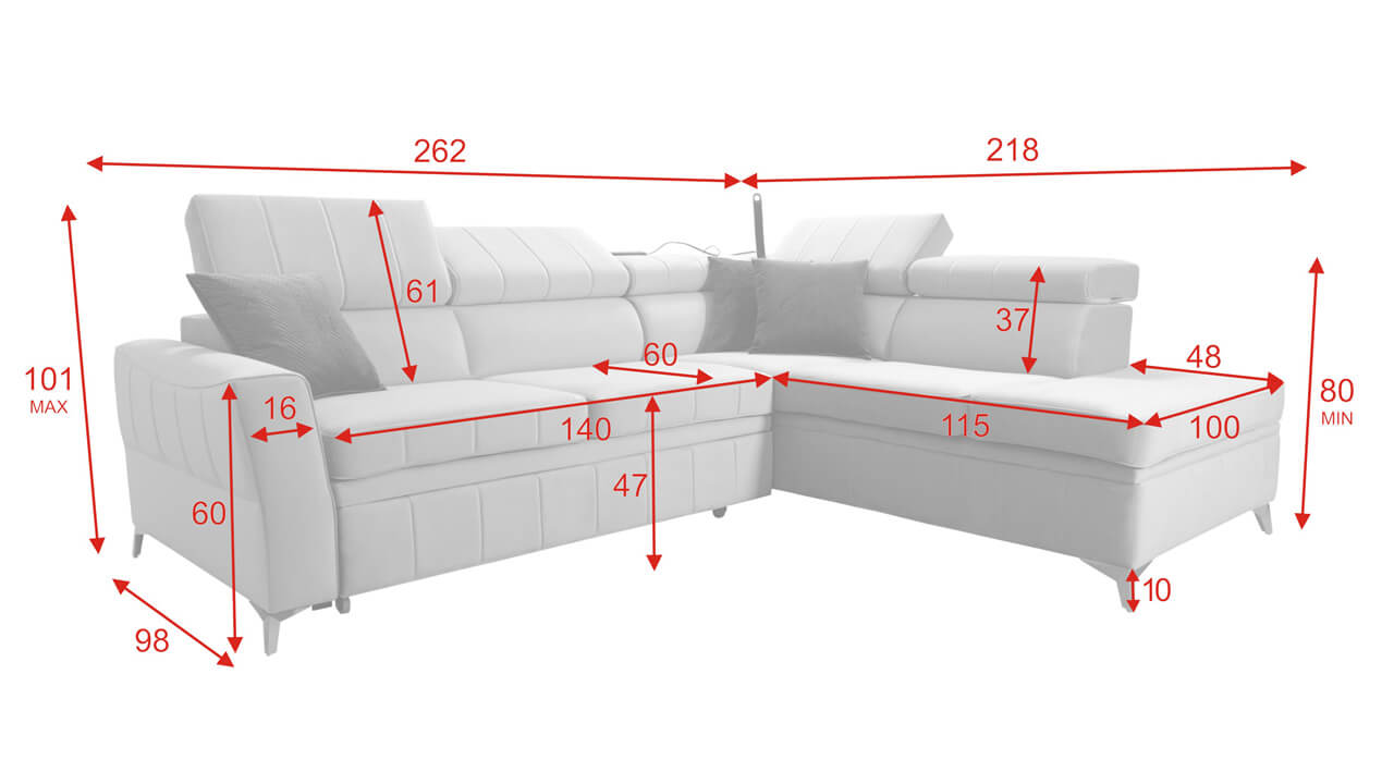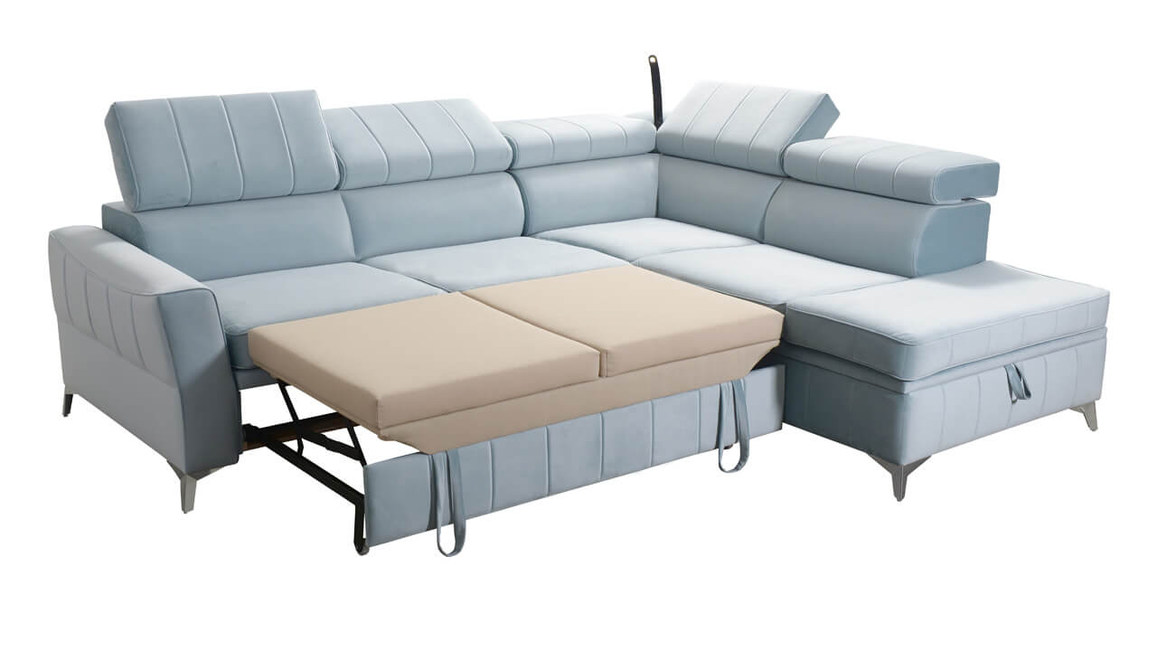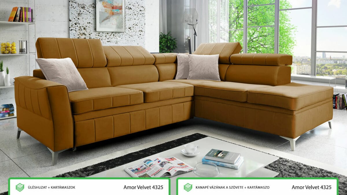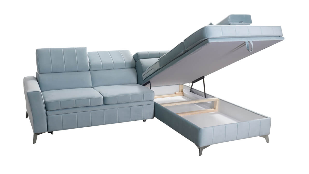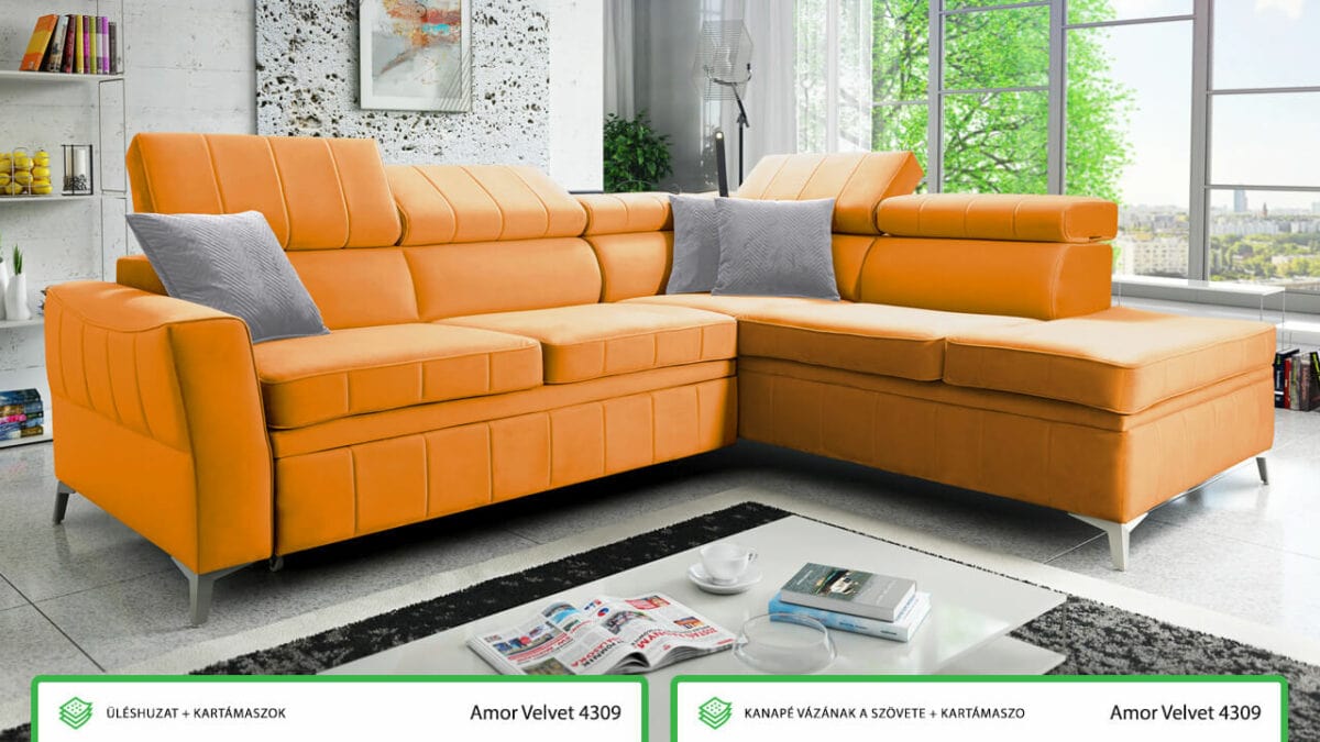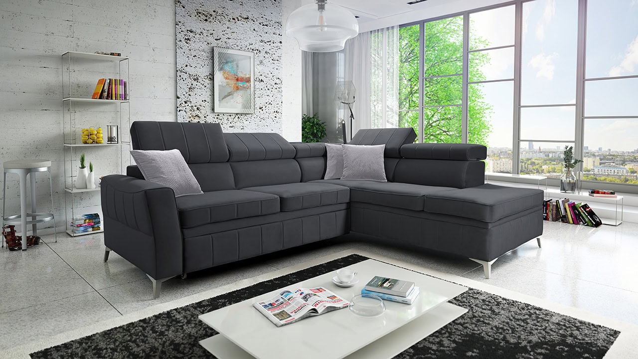 L alakú sarokkanapé, melyet tetszése szerint alakíthat. Rendelkezésére áll több tucat kárpitanyag, melyeknek köszönhetően álmai kanapéját hozhatja létre. Különleges varrással és magas modern lábakkal rendelkezik. Nem szabad megfeledkezni pár praktikus funkcióról sem – állítható fejtámlák, nagy tárolóhely és kihajtható.
