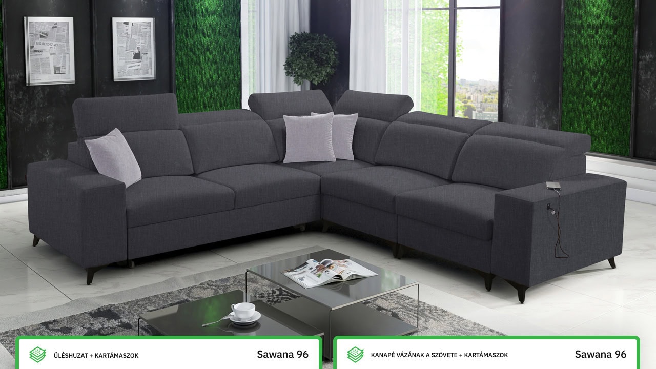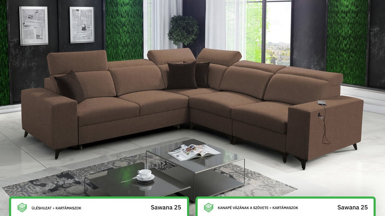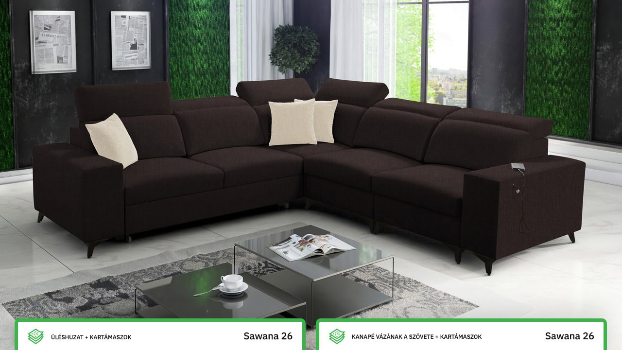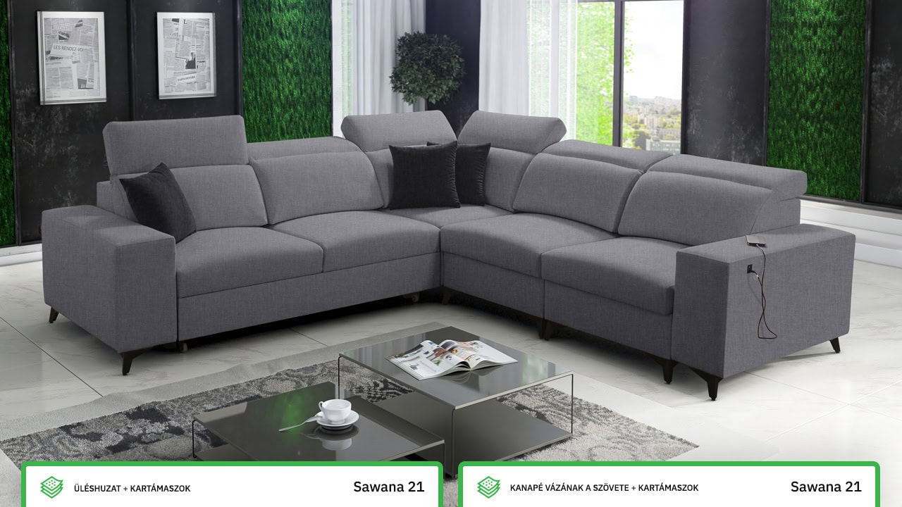 Egy minőségi és időtálló kanapéról álmodik, amelyen nyugodtan és kényelmesen pihenhet? Ez az elegáns BARTON III MIX elegáns sarokkanapé minden feltételnek megfelel. Ezt bizonyítja a minőségi stabil konstrukció, pontos varrás és sima felület. A kényelmet az állítható fejtámlák, beépített USB töltőállomás egészíti ki és persze kihajtható. A kanapé bevonó anyagának színét és típusát a saját maga elképzelésé szerint választhatja ki, így pontosan olyan kanapéja lehet, amiről álmodott.