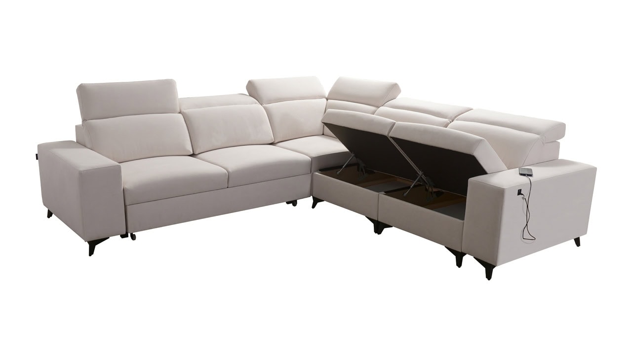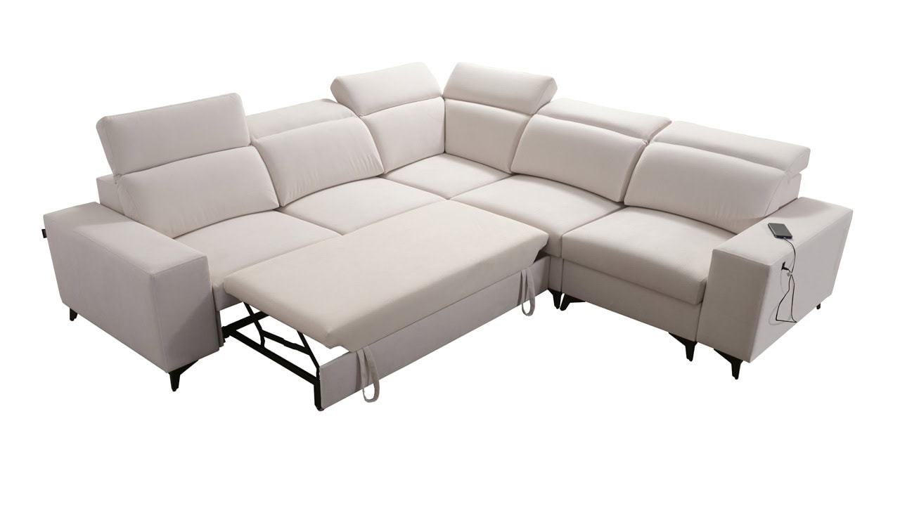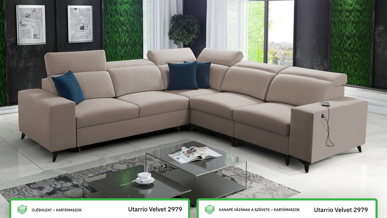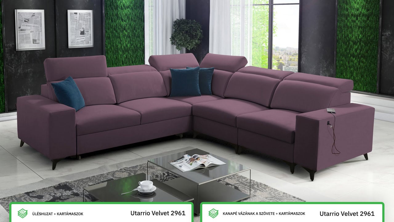 Egy minőségi és időtálló kanapéról álmodik, amelyen nyugodtan és kényelmesen pihenhet? Ez az elegáns BARTON III MIX elegáns sarokkanapé minden feltételnek megfelel. Ezt bizonyítja a minőségi stabil konstrukció, pontos varrás és sima felület. A kényelmet az állítható fejtámlák, beépített USB töltőállomás egészíti ki és persze kihajtható. A kanapé bevonó anyagának színét és típusát a saját maga elképzelésé szerint választhatja ki, így pontosan olyan kanapéja lehet, amiről álmodott.