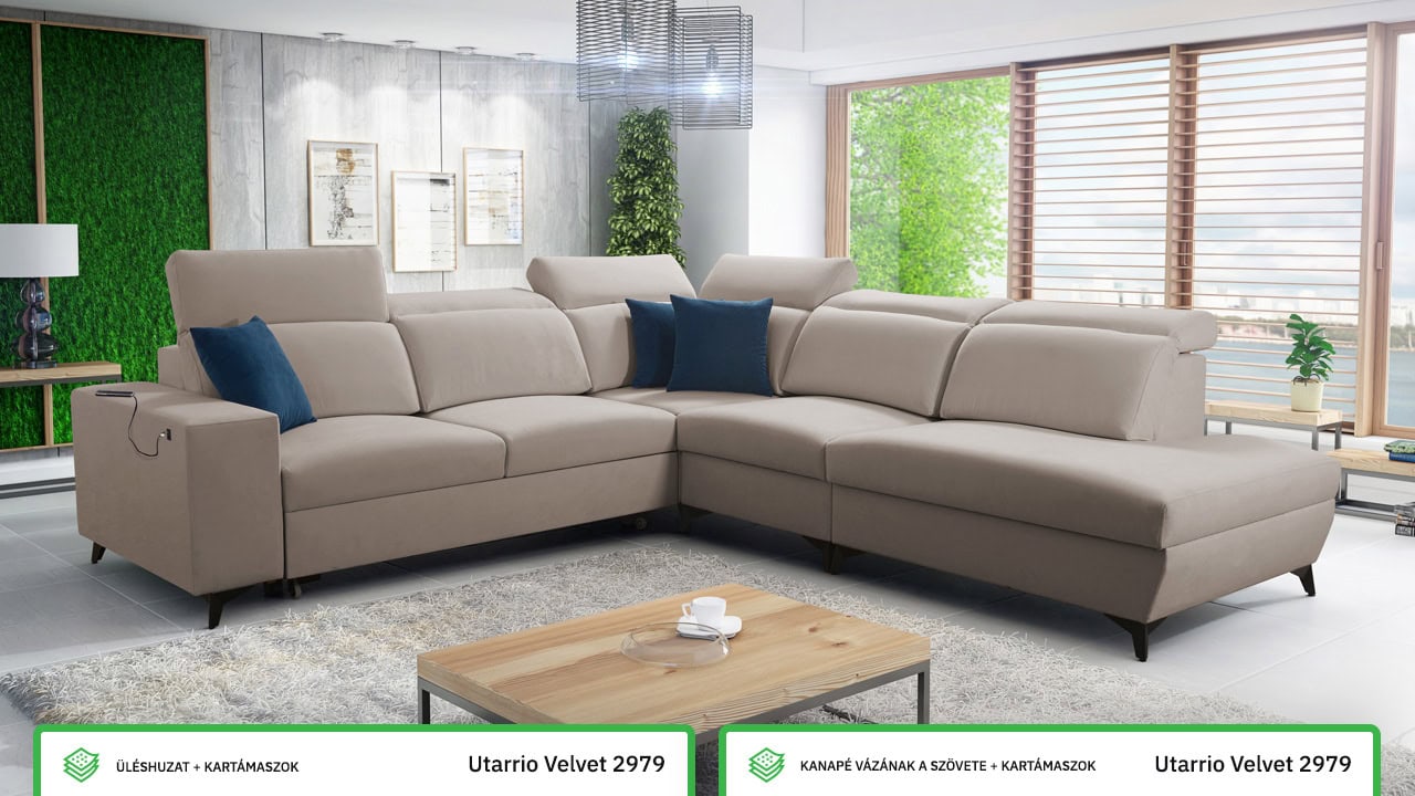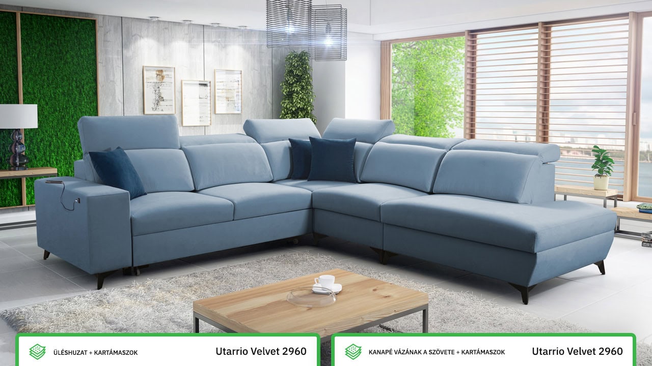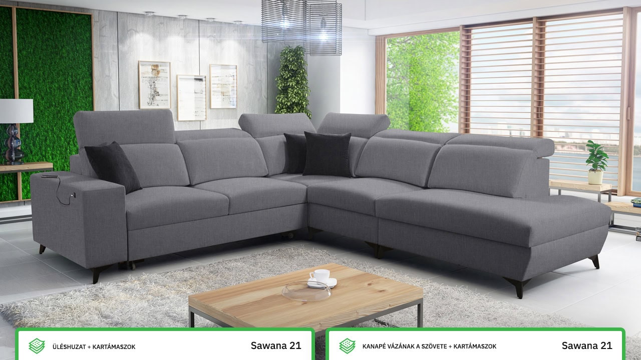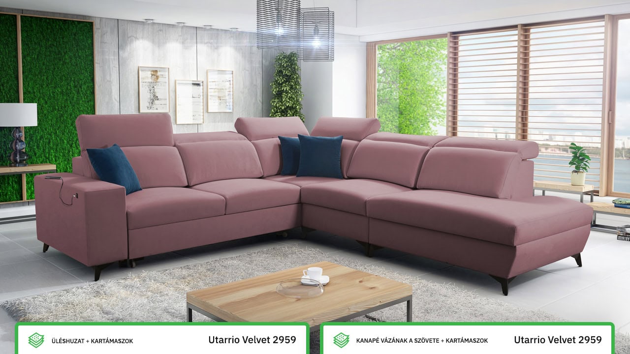 Egy elegáns darabot keres nappalijába? Az L alakú BARTON IX MIX megfelel a dizájnnal, minőséggel és kényelemmel kapcsolatos elvárásainak. Előnye, hogy mintakönyvünkből bármilyen anyaggal beboríthatja a kanapét. Így csak önökön múlik, hogy semleges és univerzális árnyalatokat, vagy az élénk és merész színeket részesítik e előnyben. Az állítható fejtámlák, a beépített töltőállomás és az ágyazhatóság lehetősége egyértelműen növeli a kényelmet.