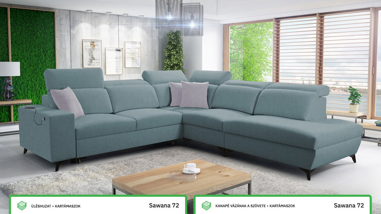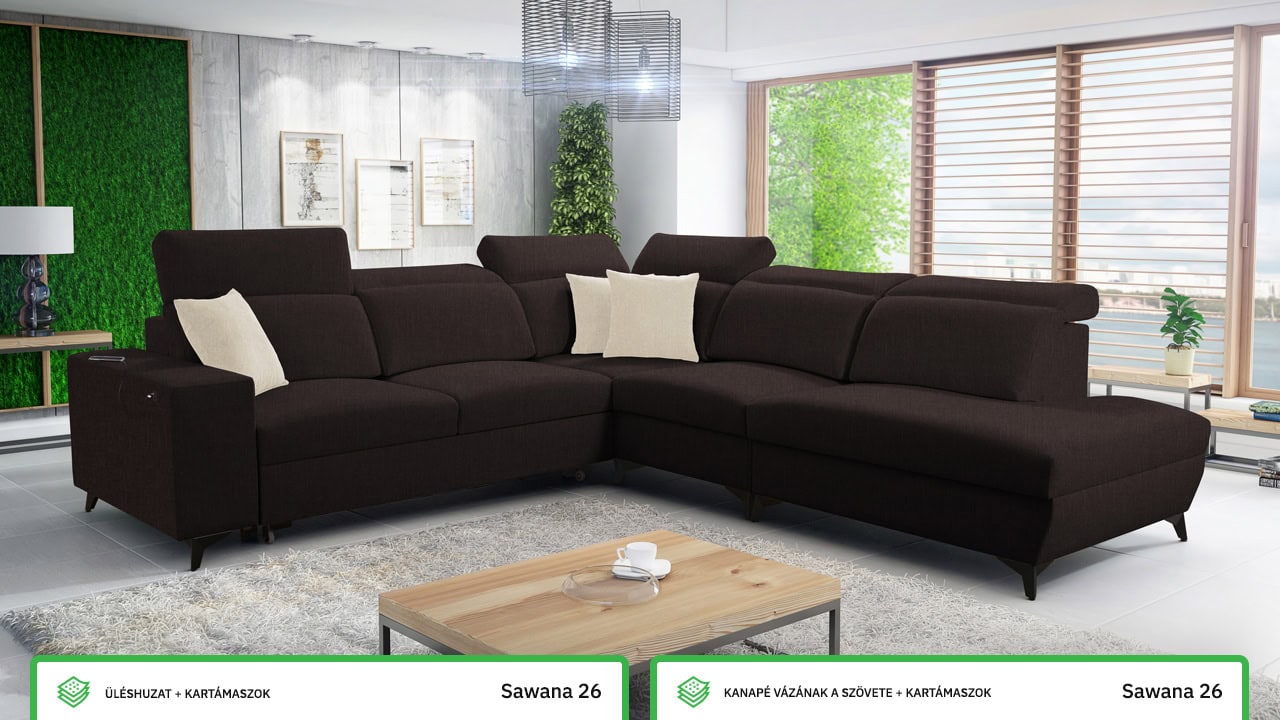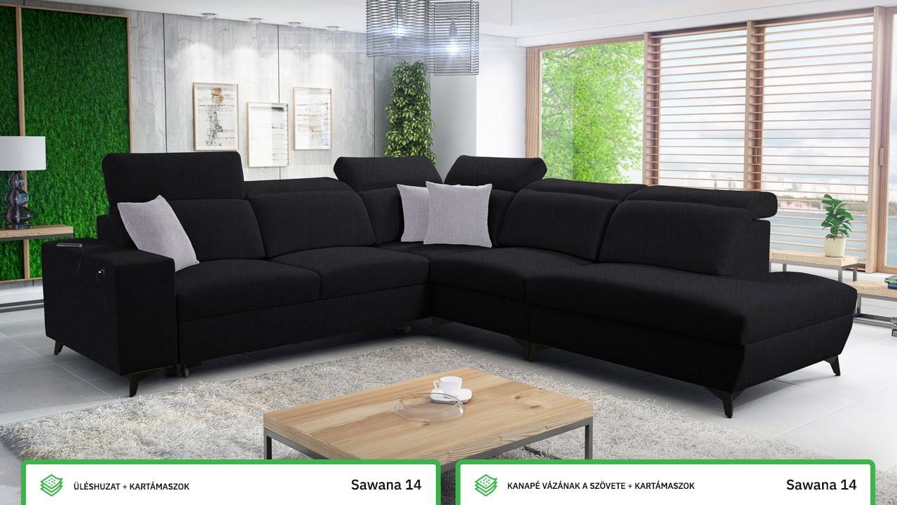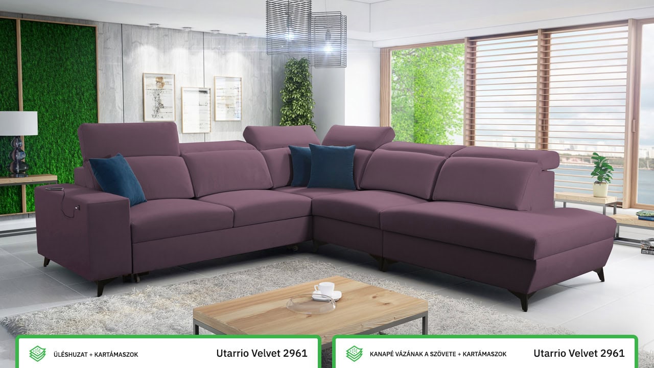 Egy elegáns darabot keres nappalijába? Az L alakú BARTON IX MIX megfelel a dizájnnal, minőséggel és kényelemmel kapcsolatos elvárásainak. Előnye, hogy mintakönyvünkből bármilyen anyaggal beboríthatja a kanapét. Így csak önökön múlik, hogy semleges és univerzális árnyalatokat, vagy az élénk és merész színeket részesítik e előnyben. Az állítható fejtámlák, a beépített töltőállomás és az ágyazhatóság lehetősége egyértelműen növeli a kényelmet.