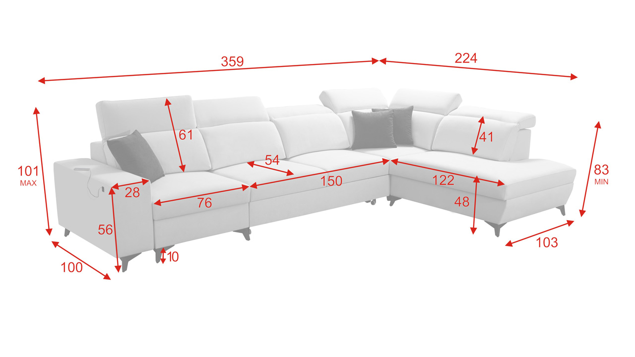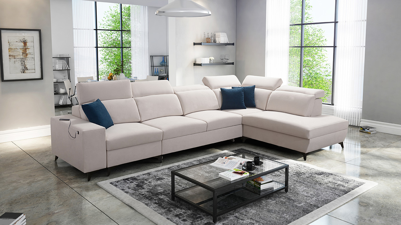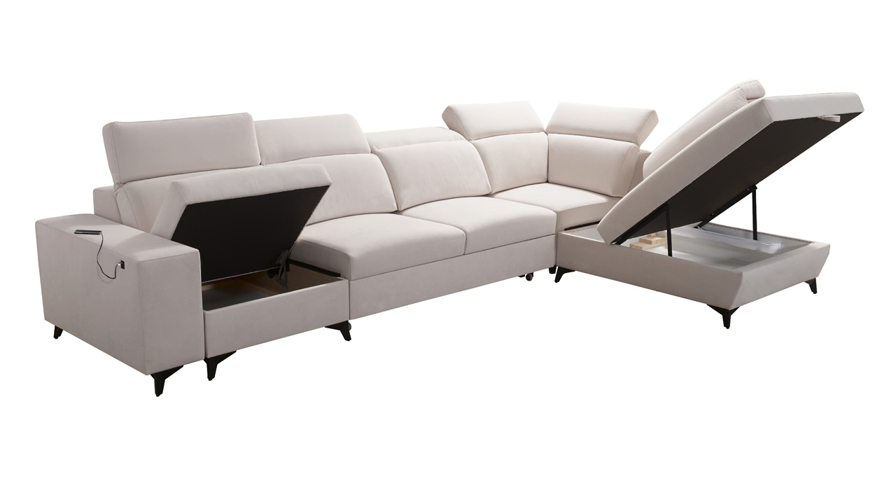 A szokatlan méretű BARTON XI MIX sarokkanapé egy gyönyörű és elegáns bútordarab, amely még a legigényesebb vásárlók tetszését is elnyeri. A kanapé állítható fejtámlákkal, két praktikus tárolórekesszel van felszerelve, és természetesen ágyazható. Üljön kényelmesen. Élvezze a pihenést egy jó könyvvel, egy filmmel vagy a családjával – stílusosan és maximális kényelemmel.
