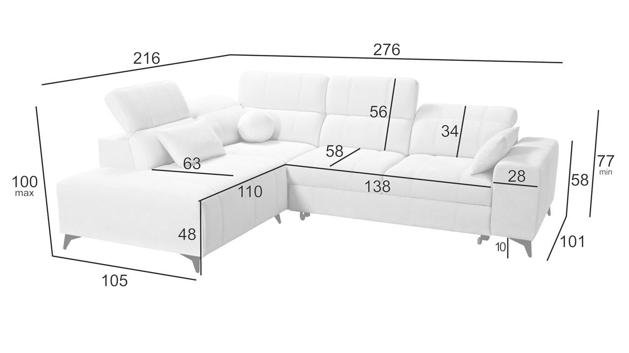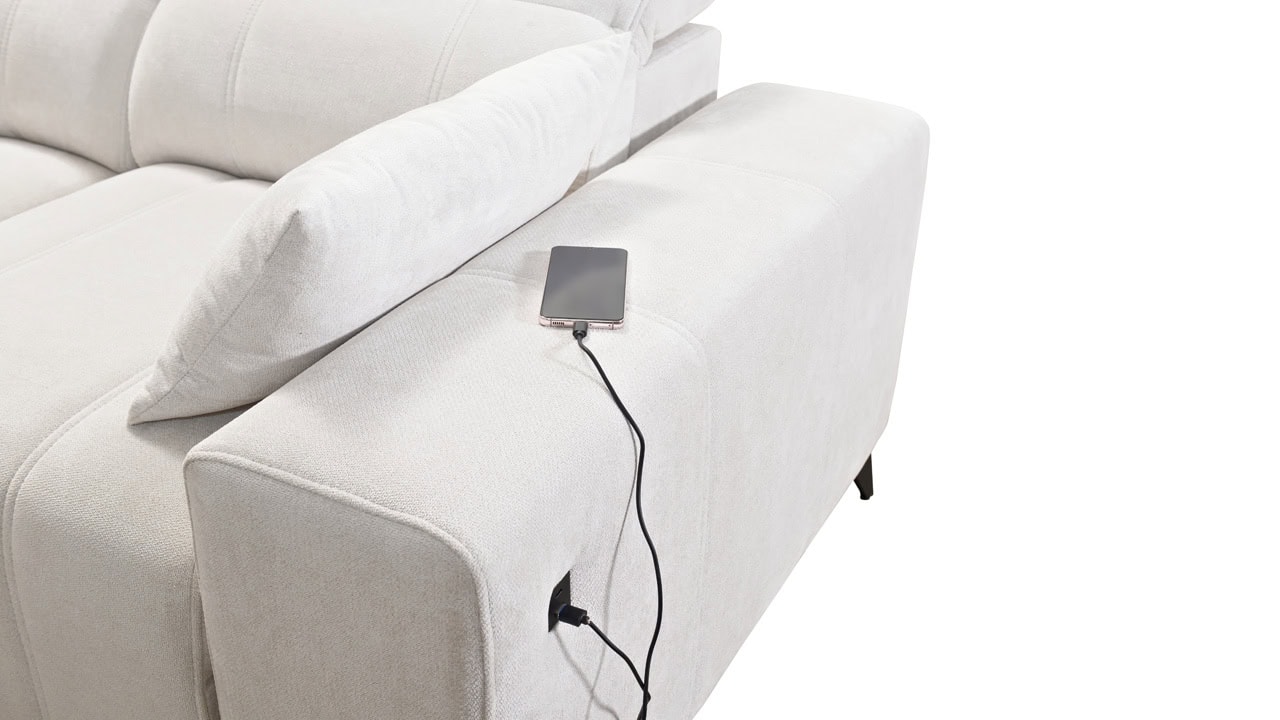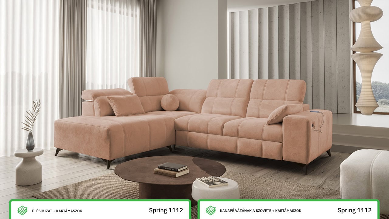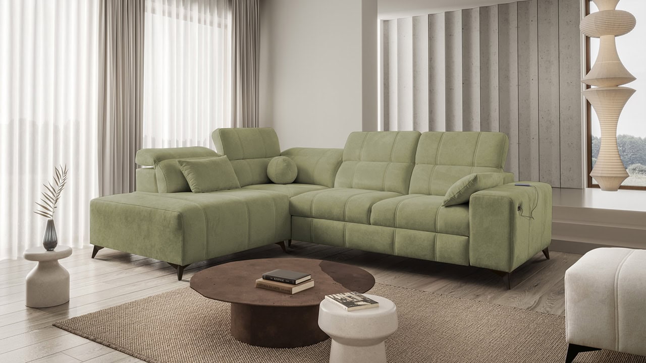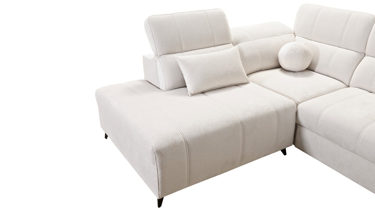 Daffy VII sarokkanapé egy kifinomult, elegáns és stílusos bútordarab nappalijába. Válasszon kínálatunkból bármilyen anyagot, és alakítson ki egy olyan kanapét, amely minden álmát megvalósítja. Elegáns vonalakat, érdekes varrást és kényelmes üléseket adtunk hozzá állítható kartámaszokkal és beépített töltőállomással. Magától értetődik, hogy van tárolóhely és kihúzható ággyal is rendelkezik, ami alkalmankénti alvást tesz lehetővé a látogatók számára.
