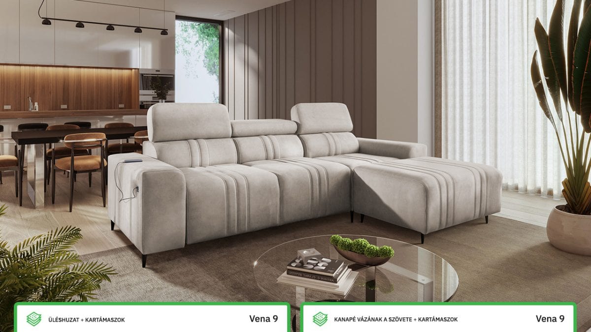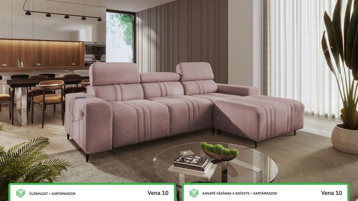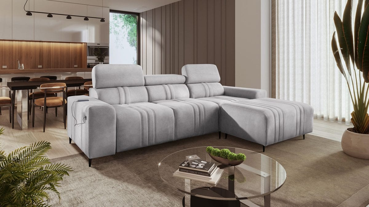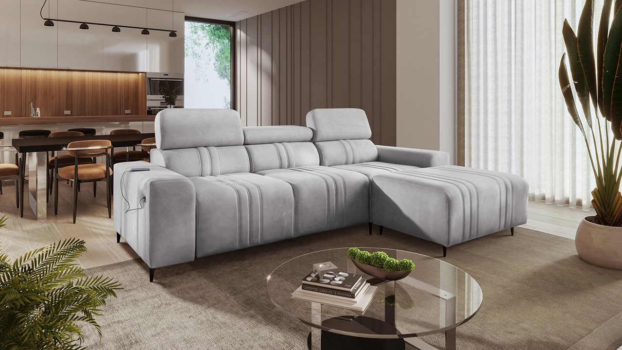 Kisebb méretű, de még mindig kellően tágas sarokkanapé állítható fejtámlákkal, tárolóhellyel, ágyazható és beépített USB töltővel is rendelkezik. Ideális választás mindazok számára, akik kanapét keresnek esti kikapcsolódáshoz, filmnézéshez, könyvolvasáshoz vagy baráti társaságban való üldögéléshez. A kanapé bármilyen színben gyönyörűen megállja a helyét, a világos krémtől az élénk pasztelltől a sötétbarnáig vagy szürkéig.