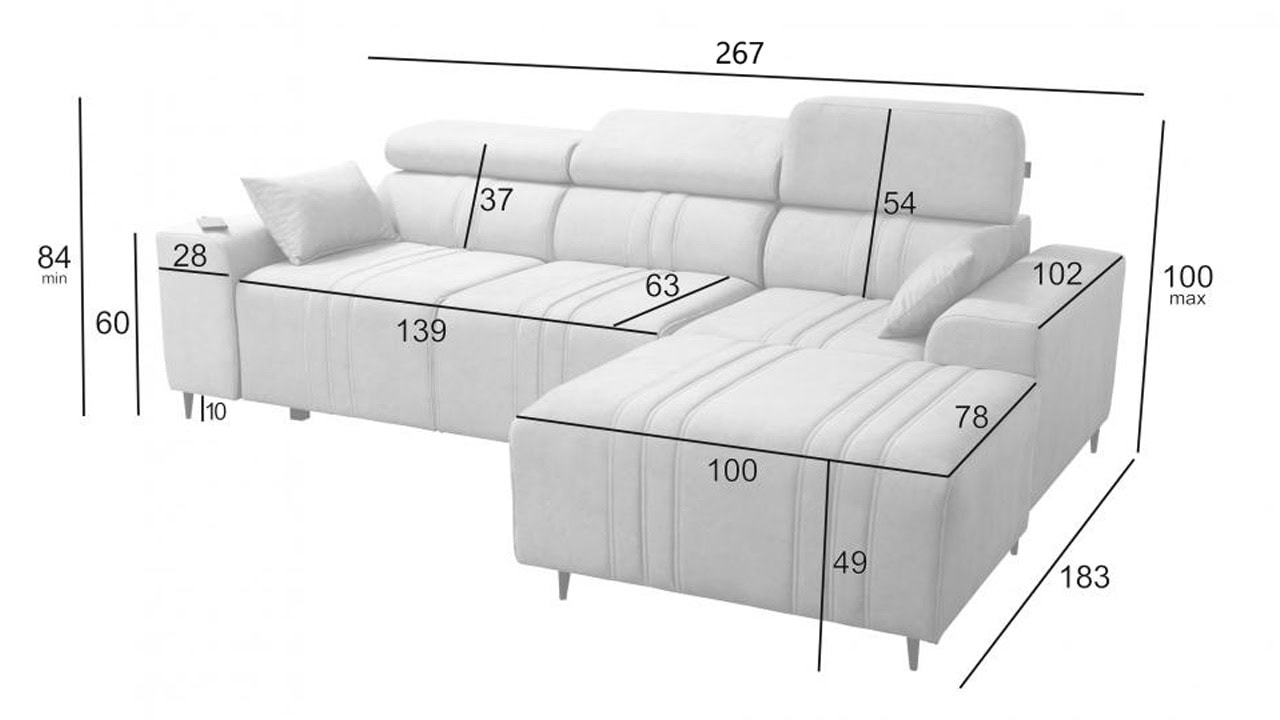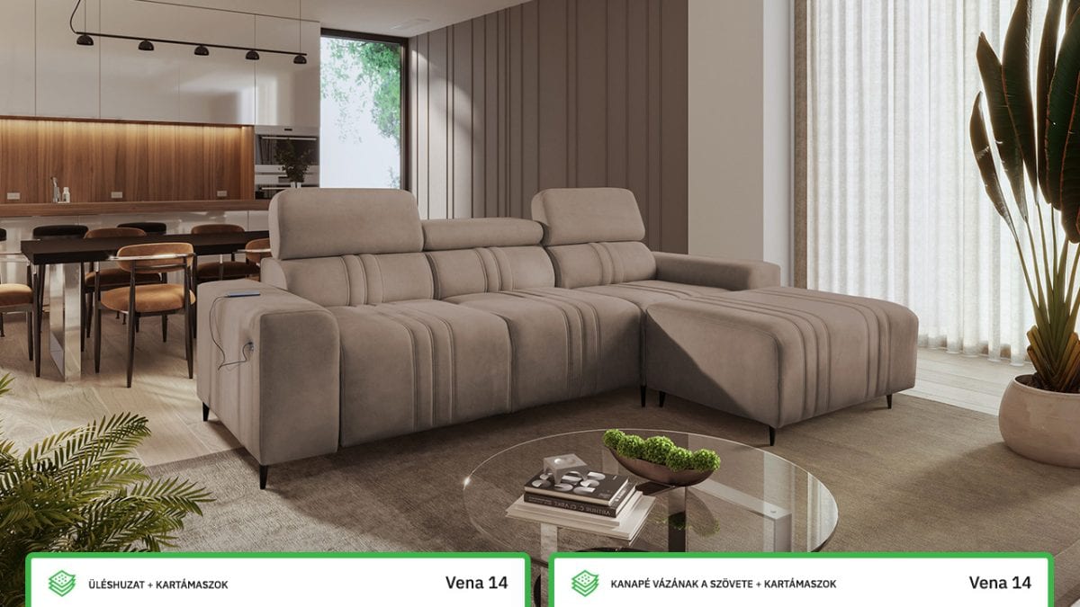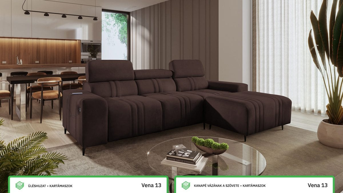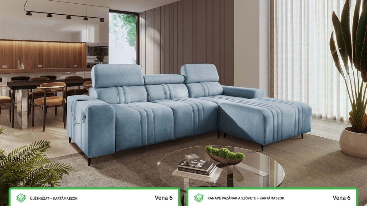 Kisebb méretű, de még mindig kellően tágas sarokkanapé állítható fejtámlákkal, tárolóhellyel, ágyazható és beépített USB töltővel is rendelkezik. Ideális választás mindazok számára, akik kanapét keresnek esti kikapcsolódáshoz, filmnézéshez, könyvolvasáshoz vagy baráti társaságban való üldögéléshez. A kanapé bármilyen színben gyönyörűen megállja a helyét, a világos krémtől az élénk pasztelltől a sötétbarnáig vagy szürkéig.