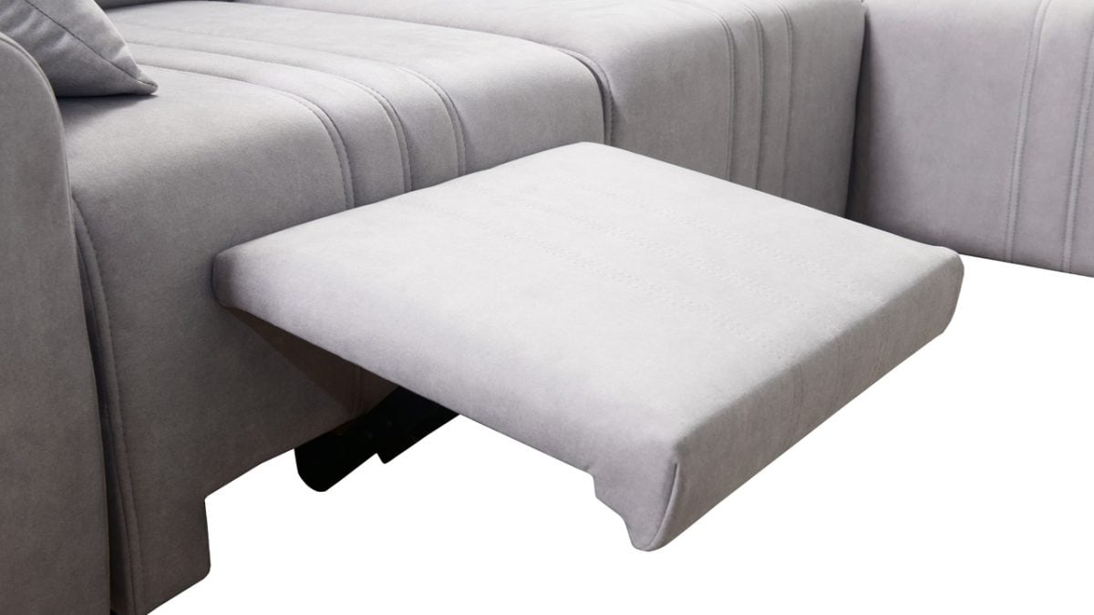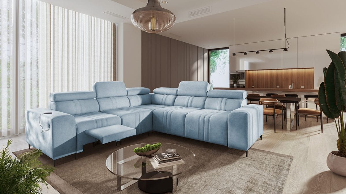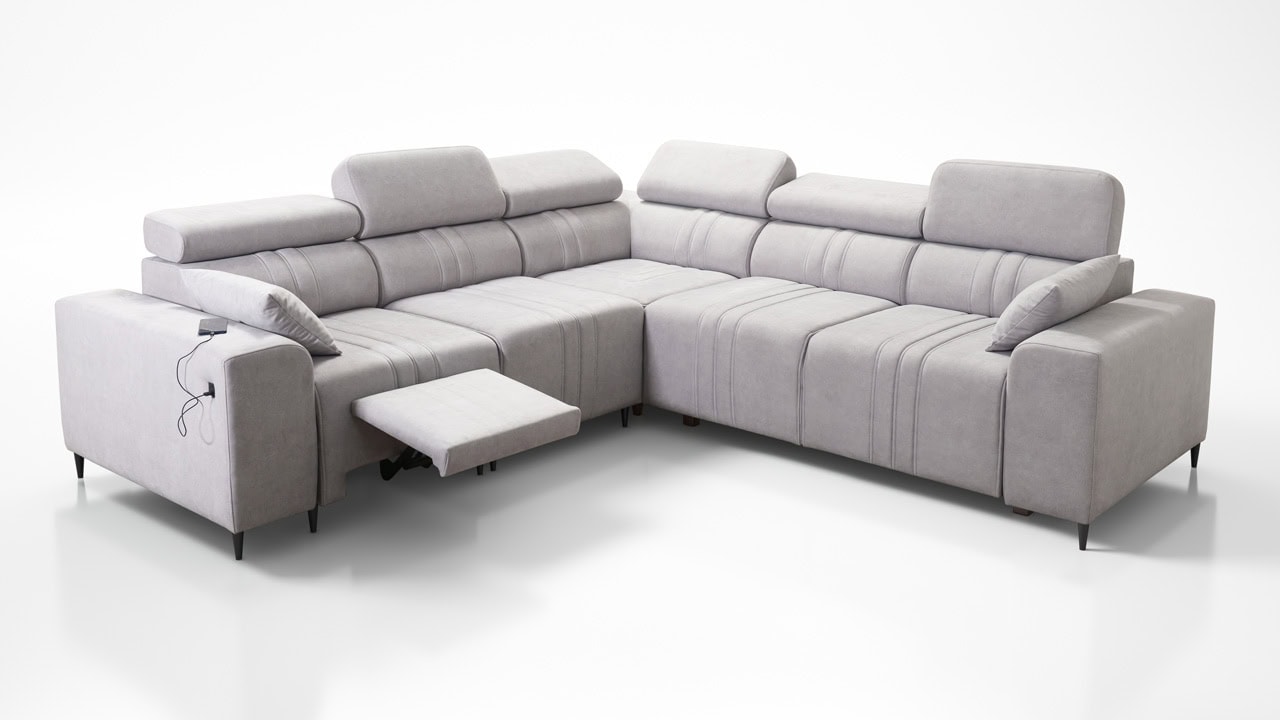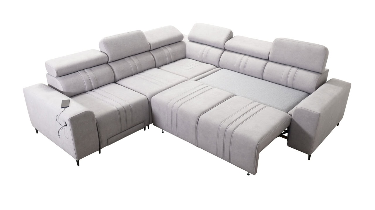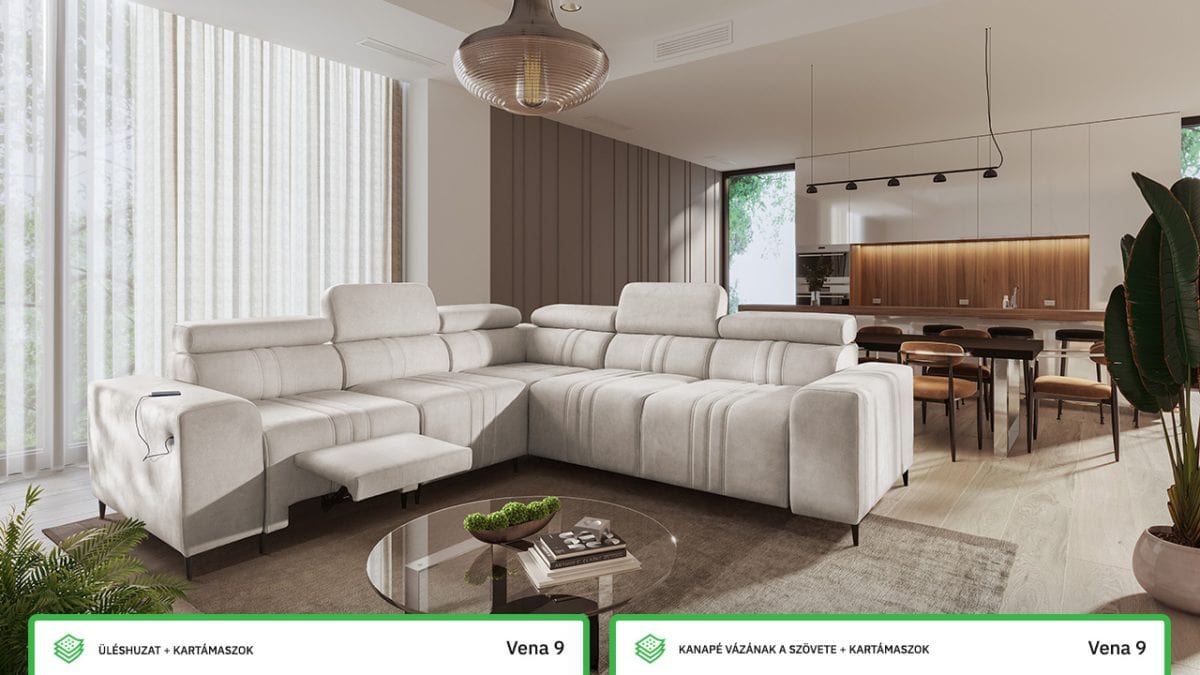 A masszív megjelenésű Fabio III sarokkanapé maximális kényelmet biztosít. Fejtámlákkal, USB töltővel és kihúzható ággyal van felszerelve. Választhatja akár tárolóhellyel rendelkező, vagy akár lábtartós változatban. Bármilyen színben gyönyörűen kiemelkedik – világos krém vagy bézs, sötétszürke és barna, de kifejezőbb rózsaszín, zöld vagy sárga árnyalatokban is. Mintakönyvünkből tetszőleges anyagot választhat rá.