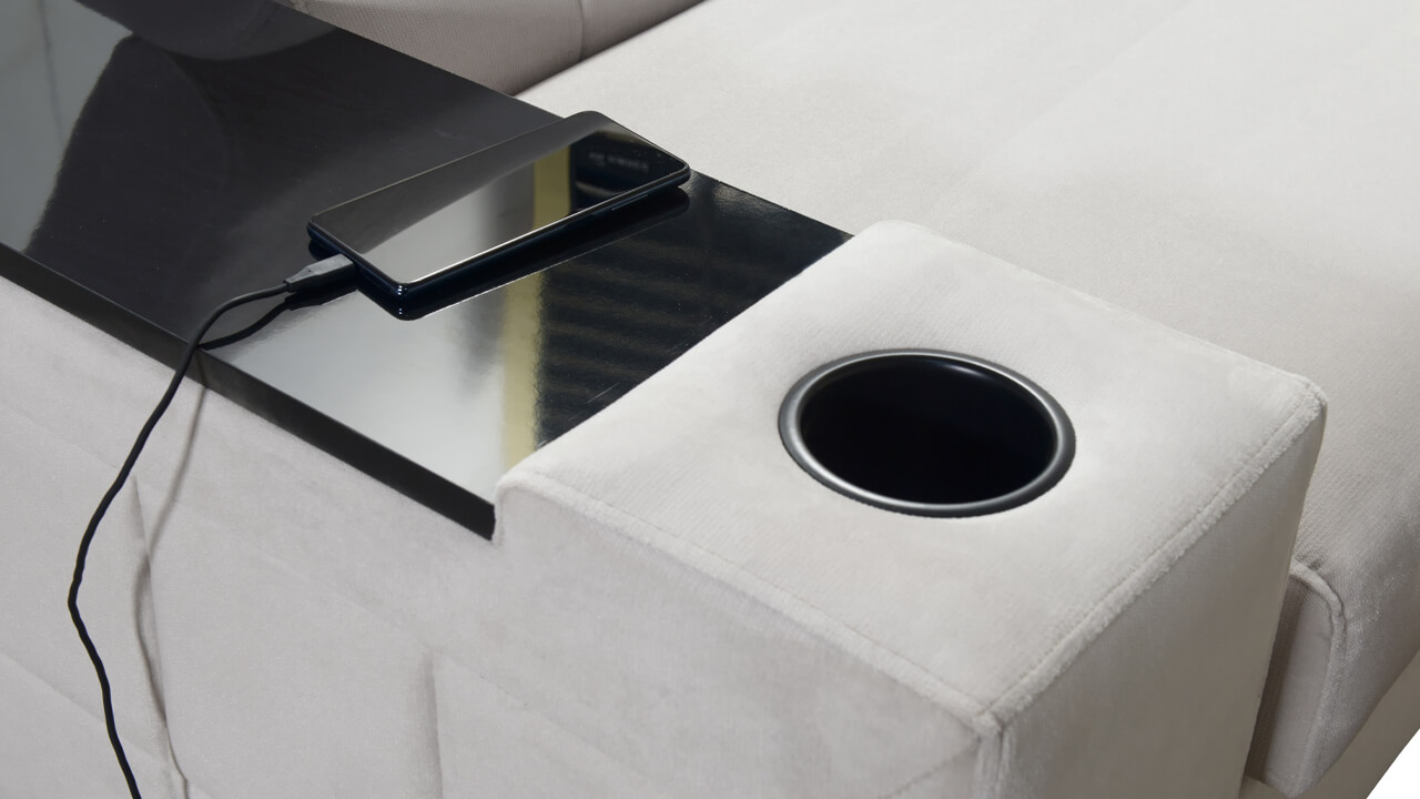 Állítható fejtámlák Beépített minibár Pohártartó Töltőállomás