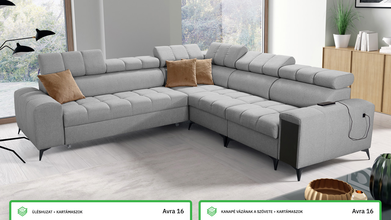 • Bizonyos típusú kanapékhoz ingyenes párnák járnak