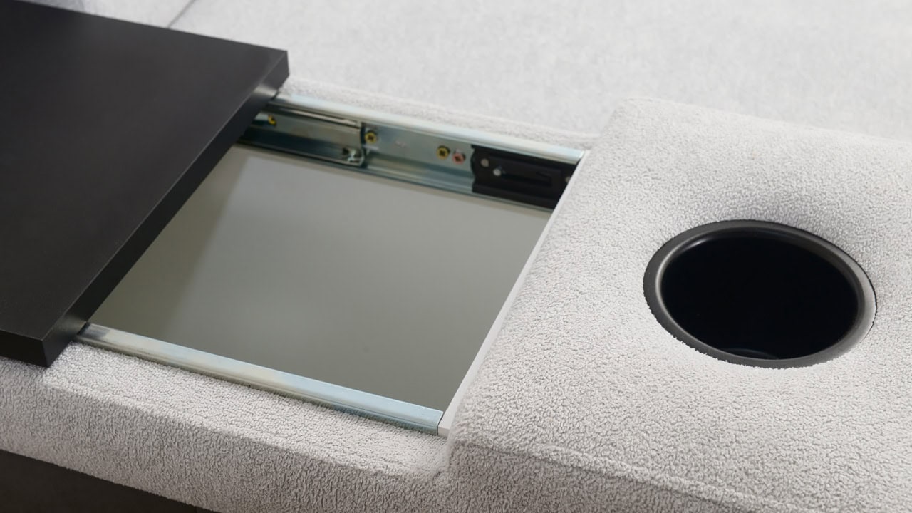 Állítható fejtámlák Beépített minibár Fa kiegészítők Pohártartó Töltőállomás