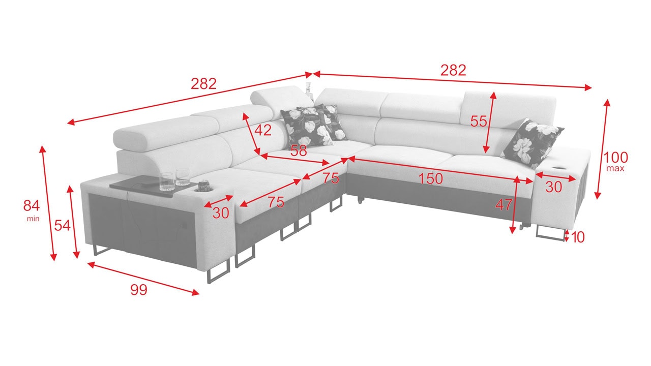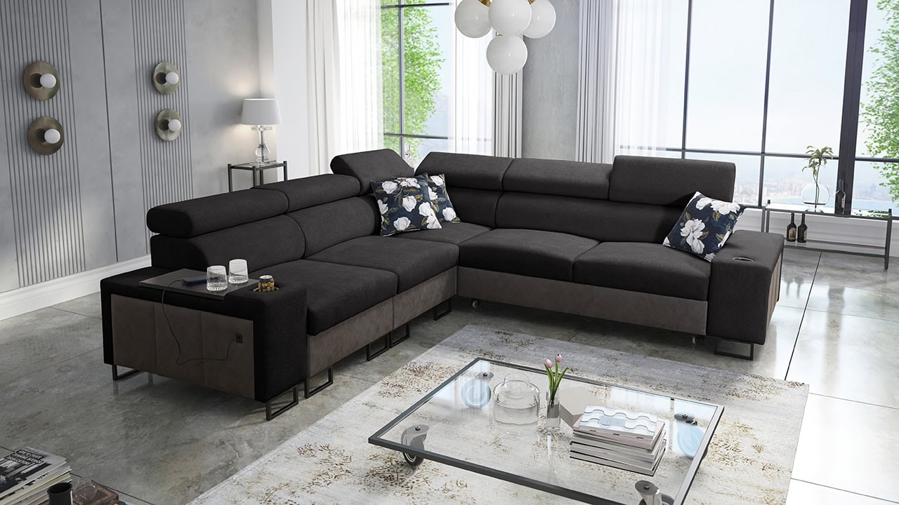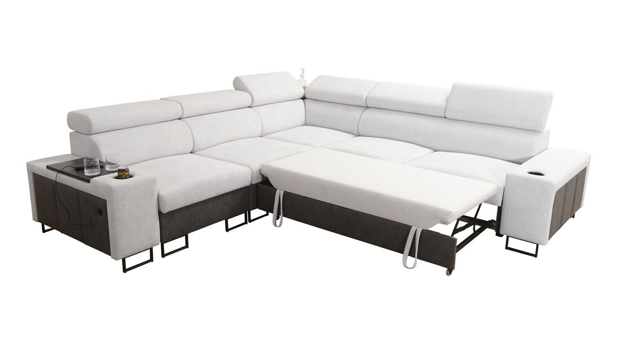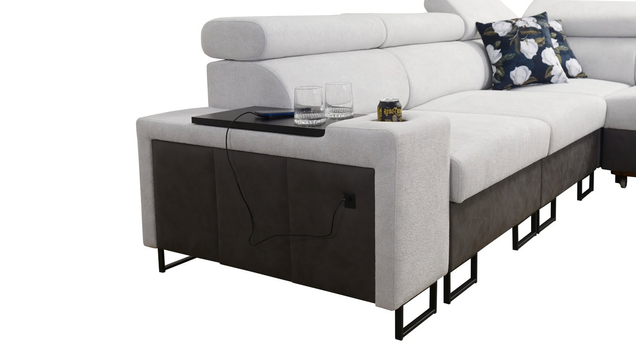 A Melodia III sarokkanapé rendkívüli kényelmet és funkcionalitást kínál egyben. A kihajtható ággyal, a tárolóhellyel, a beépített minibárral és az elegáns kialakítással a nappali gyönyörű és praktikus központi eleme lesz. A mintakönyvből válassza ki ízlése szerint a borítóanyagot, és készíttesse el az ülőgarnitúrát az Ön által választott színben.