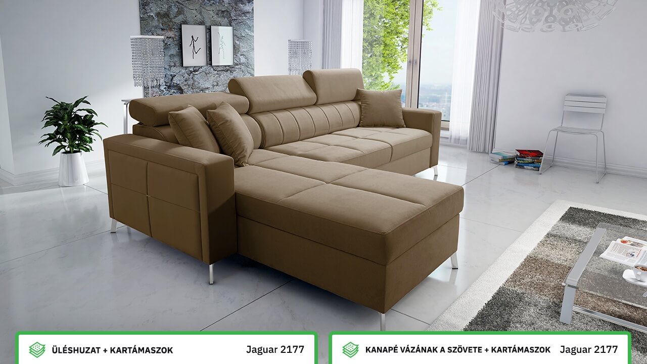 • Kedvezményes áron bővítheti új kanapéját kiegészítőkkel, mint például extra párnák, dohányzóasztal vagy matrac. 20.000 Ft felár ellenében 7 héten belül kiszállítjuk Önnek az ülést.