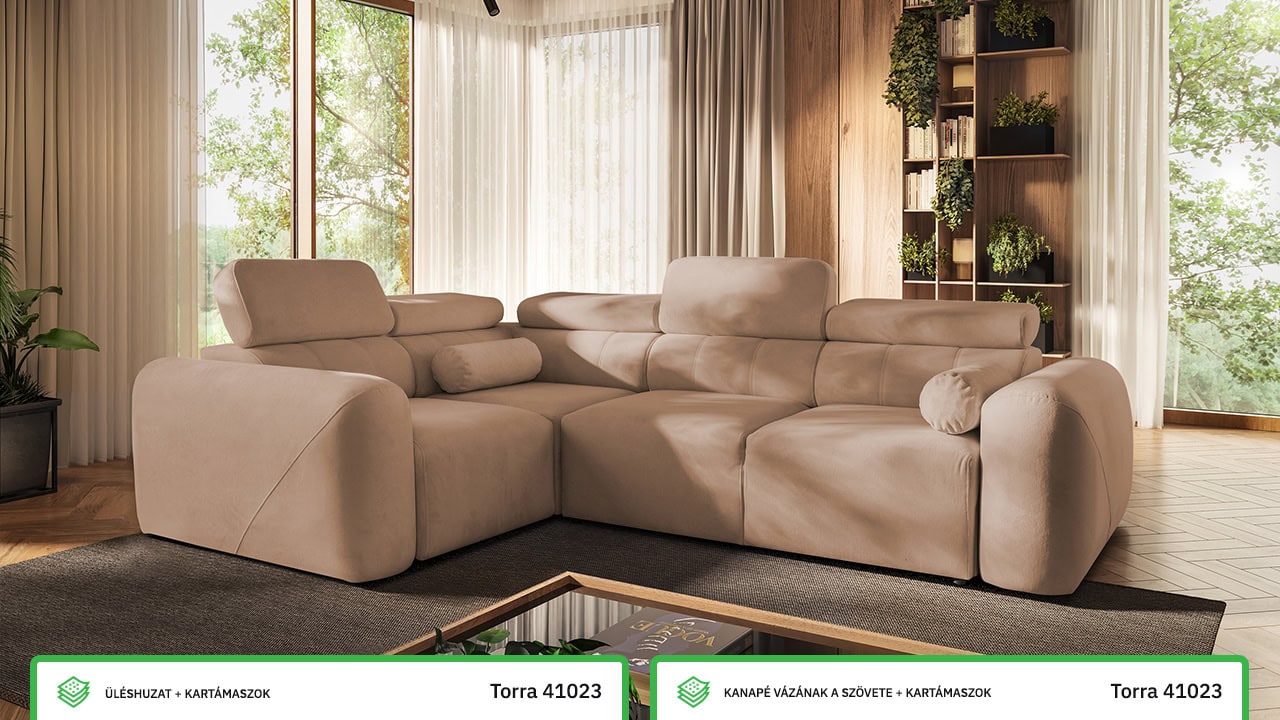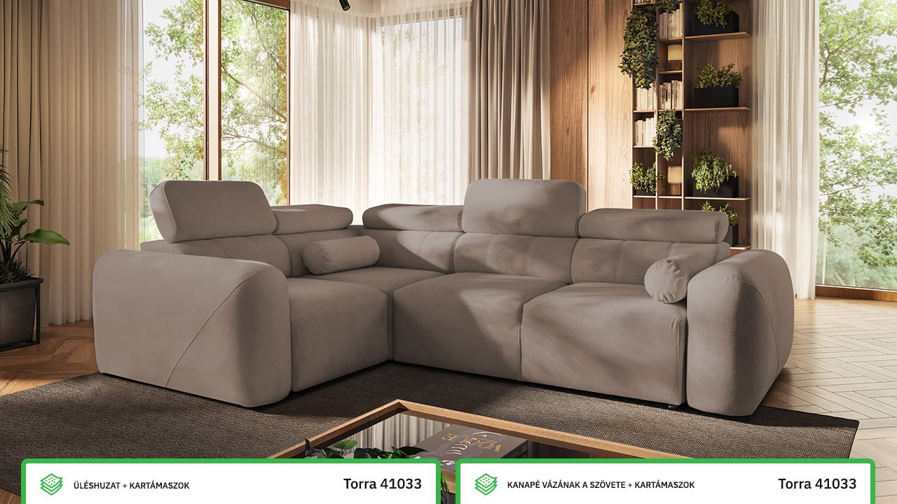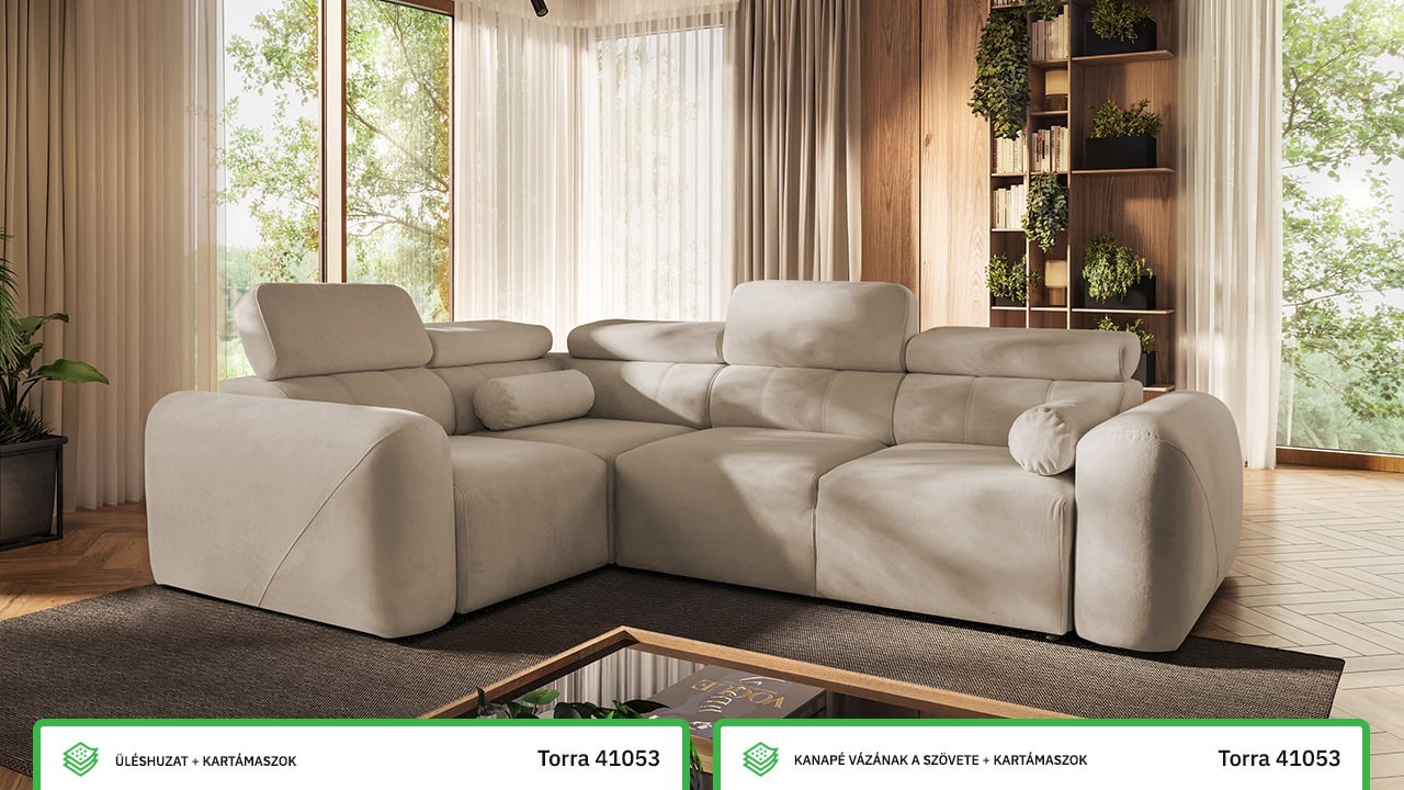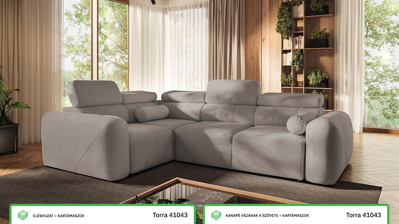 A Velar II sarokkanapé tökéletes az otthoni hangulatos estékre. Az elegáns, láb nélküli dizájn gyönyörűen illeszkedik a modern nappalikba, míg a kihúzható ágy és a tárolóhely praktikus mindennapi használatot biztosít. A kényelmet állítható fejtámlák és felár ellenében elektromos lábtartó egészíti ki. Válasszon bármilyen kárpitot kínálatunkból, és elkészítjük.