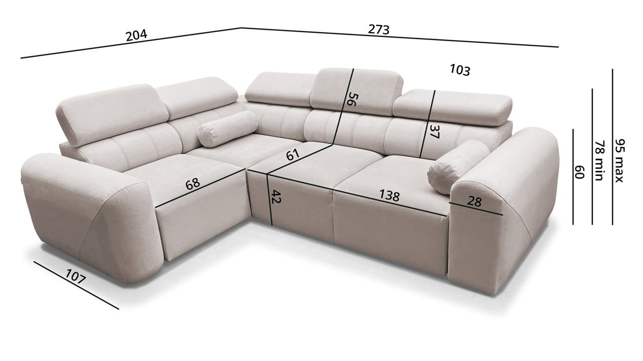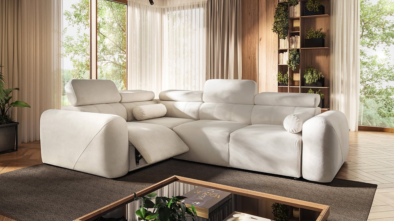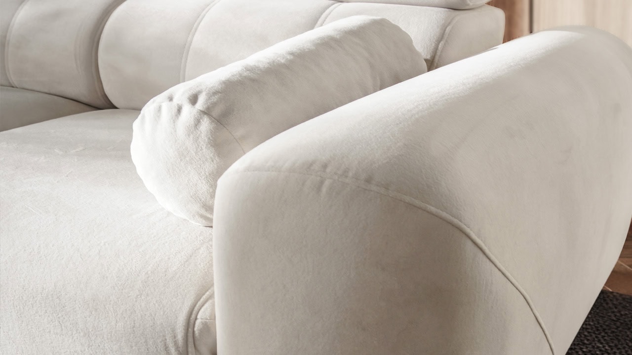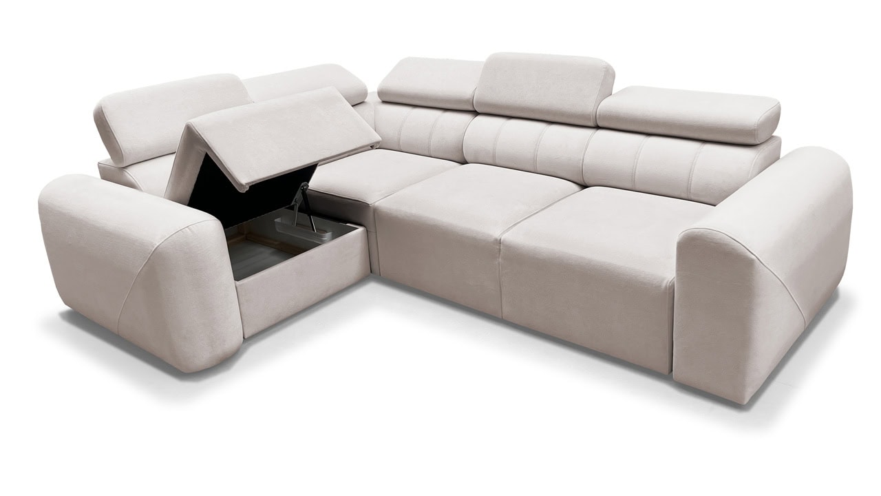 A Velar II sarokkanapé tökéletes az otthoni hangulatos estékre. Az elegáns, láb nélküli dizájn gyönyörűen illeszkedik a modern nappalikba, míg a kihúzható ágy és a tárolóhely praktikus mindennapi használatot biztosít. A kényelmet állítható fejtámlák és felár ellenében elektromos lábtartó egészíti ki. Válasszon bármilyen kárpitot kínálatunkból, és elkészítjük.