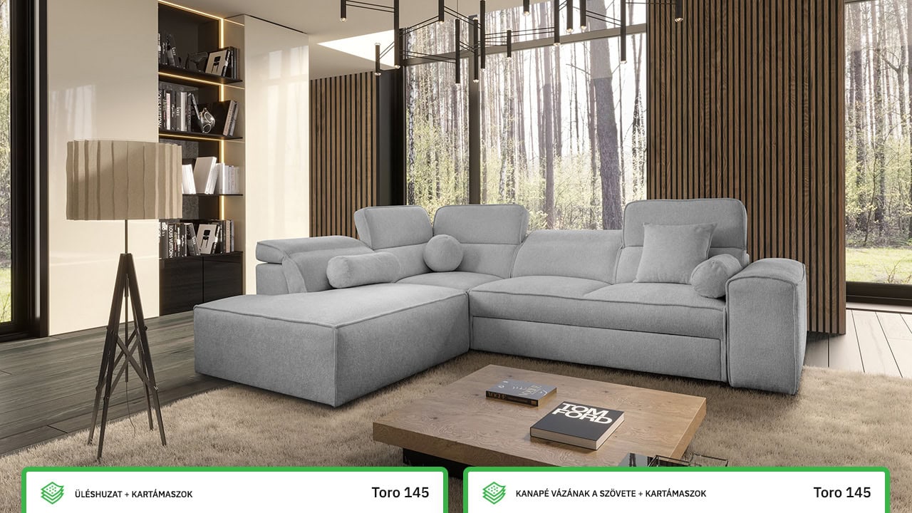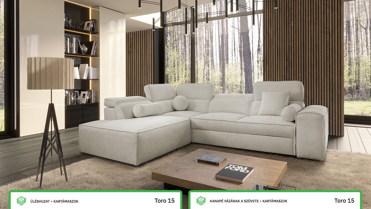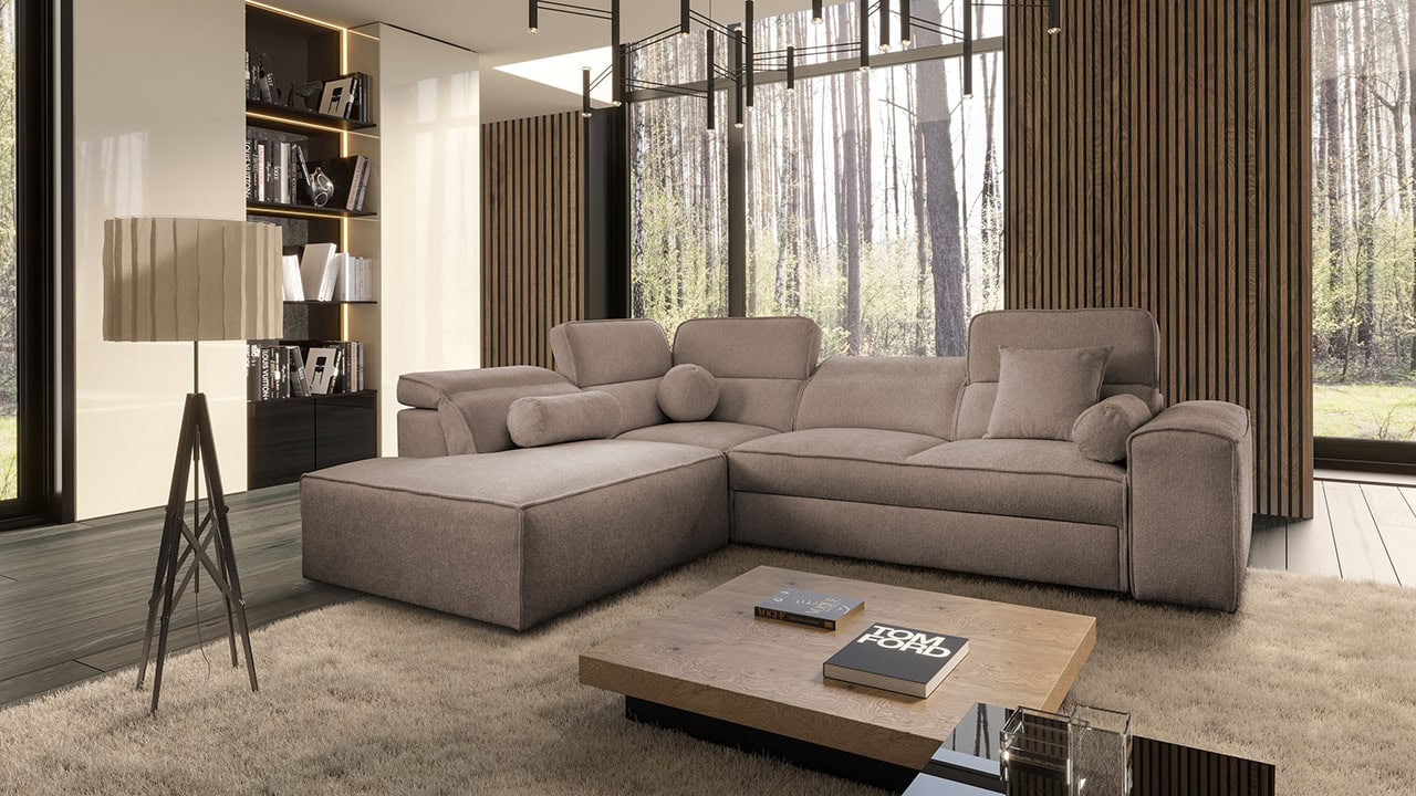 Rendezze be nappaliját stílusosan a Vitton VII sarokkanapéval. Letisztult formatervezése és praktikus méretei még kisebb helyiségekbe is illeszkednek. A kényelmet biztosítja a kihúzható ágy, praktikus tárolóhely és állítható fejtámlák egészítik ki. Ez a kanapé nemcsak maximális kényelmet biztosít ülés közben, hanem az esztétikus kialakítás is elkápráztatja. A lábak és varrás nélküli modern dizájn még a legmodernebb nappaliba is illik. Természetes földszínű, pasztell vagy erősebb színben választja?