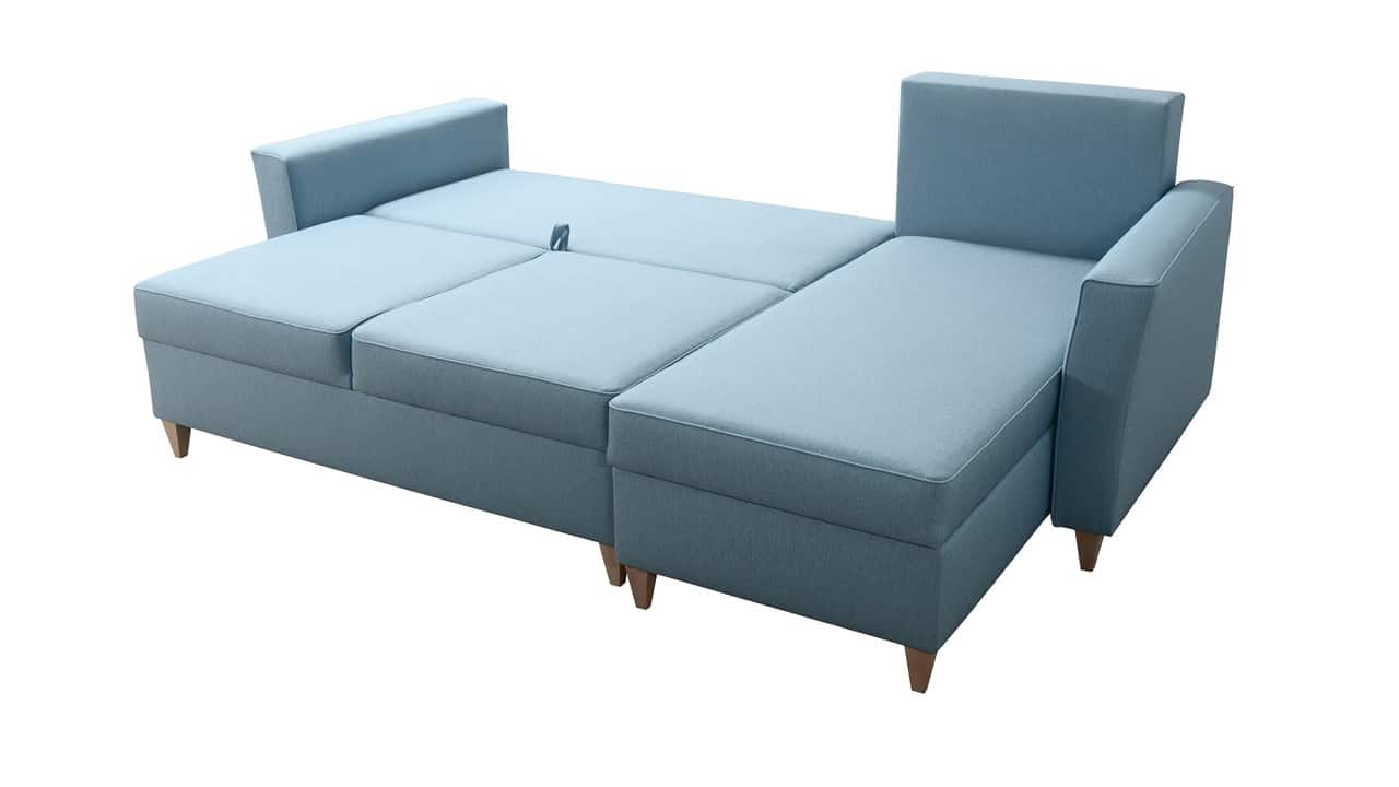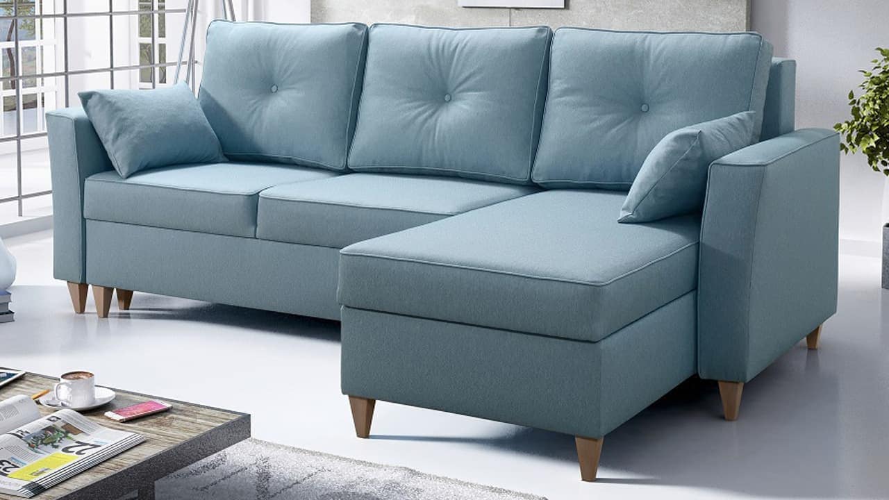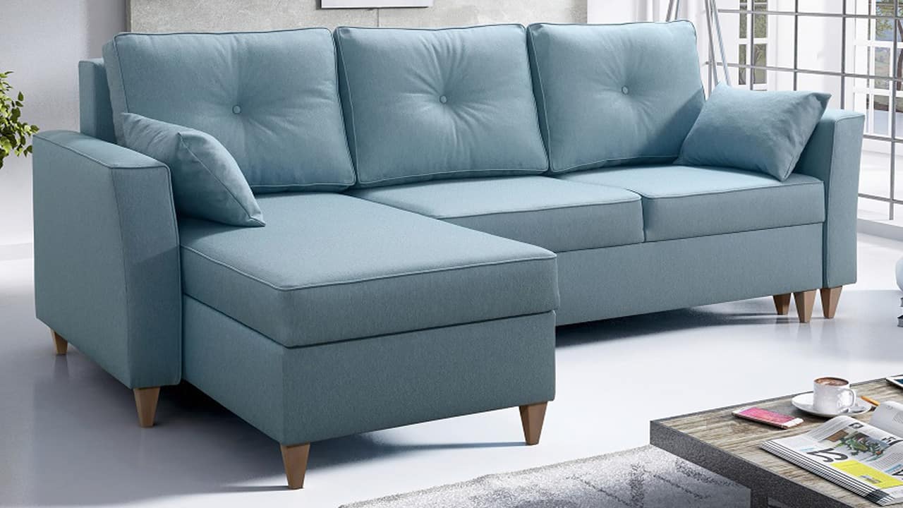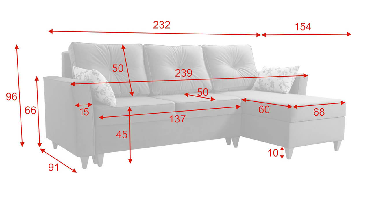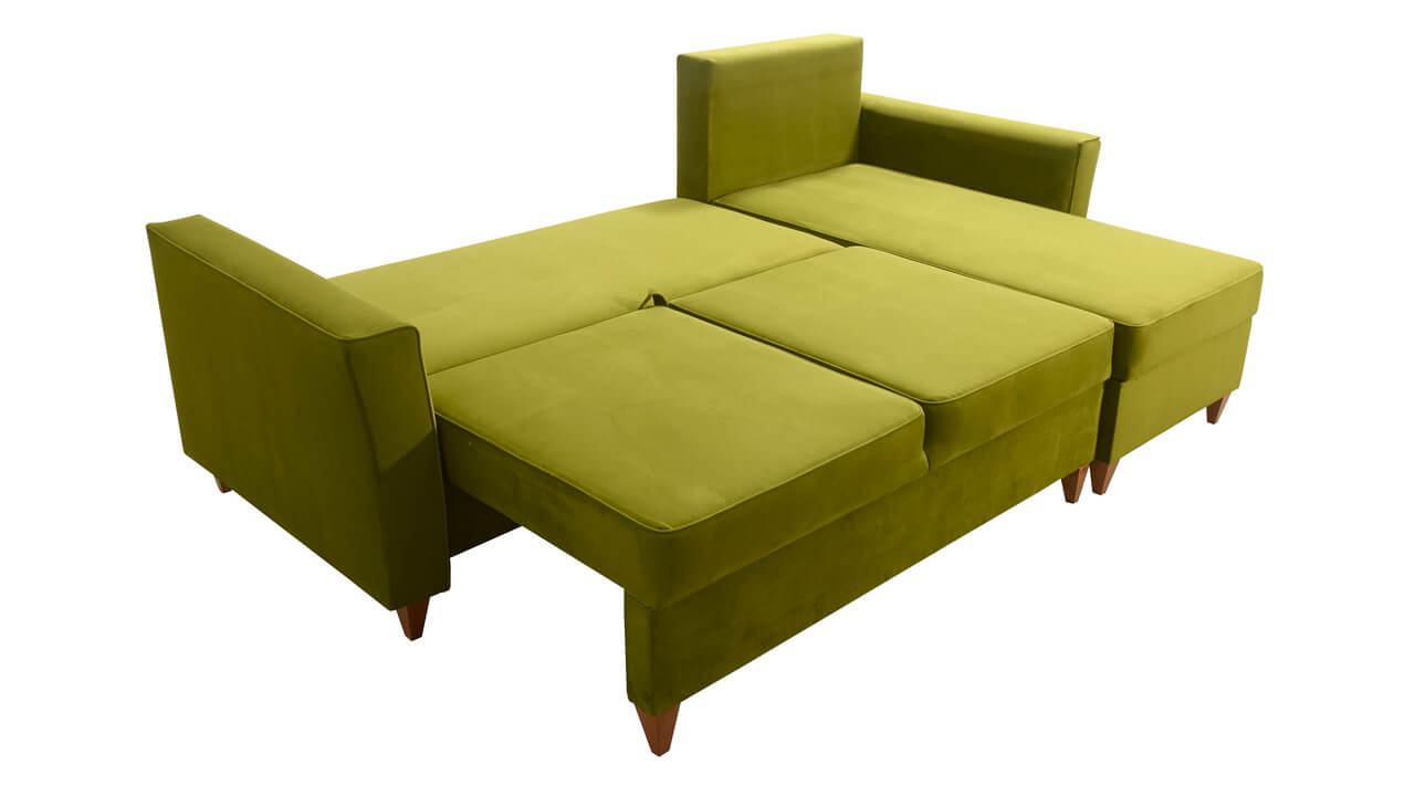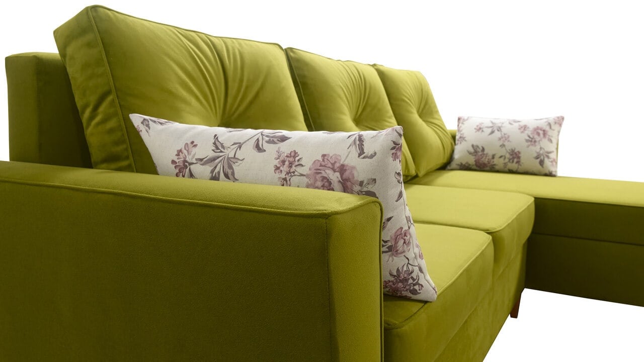 Elegáns sarokkanapé magasított lábakkal, amelyek vizuálisan nagyobb teret adnak a nappalinak. Otthonokba és konferenciatermekbe egyaránt alkalmas. Kiválaszthatja a kárpitanyag típusát és színét.