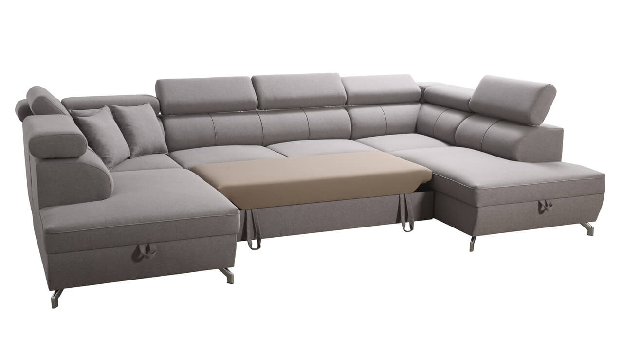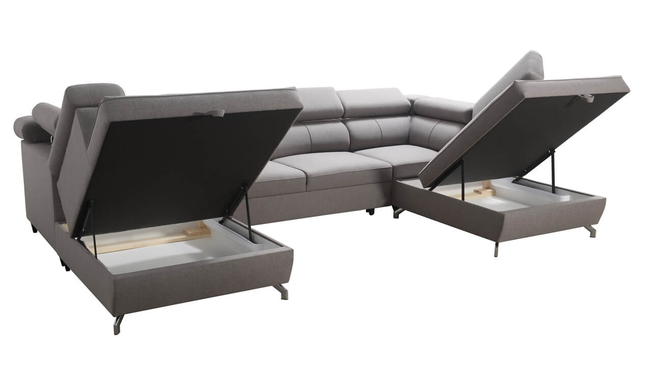 A Vento X egy igazán nagy és tágas U-alakú kanapé, amely állítható fejtámlával és nagyon kényelmes kárpitozással rendelkezik. Figyelje meg a lábak érdekes kialakítását is, amelyek érdekes karaktert kölcsönöznek a kanapénak, és vizuálisan megnövelik az egész nappalit. A kanapéhoz egy nagy tárolórekesz és párnák is tartoznak.